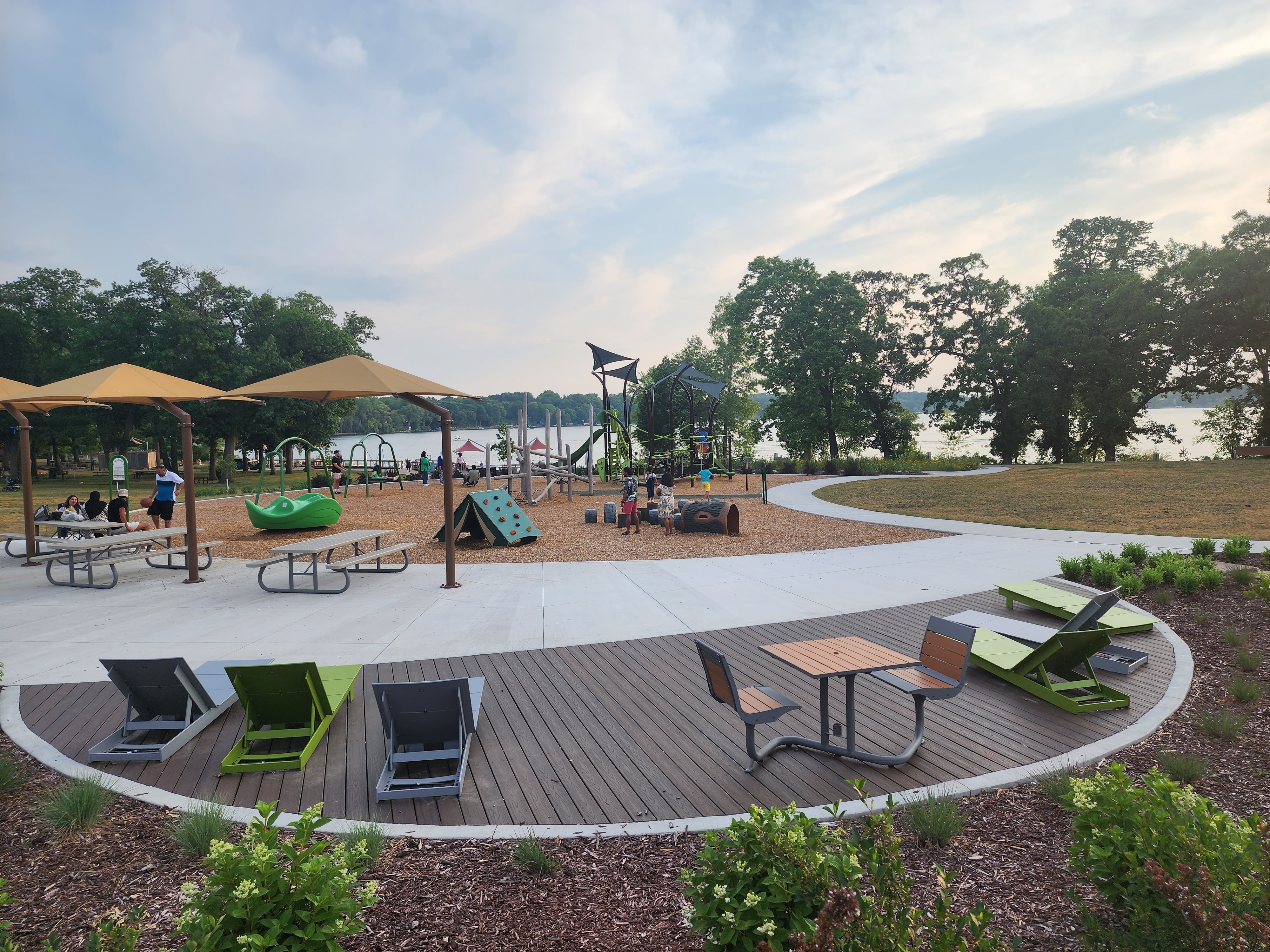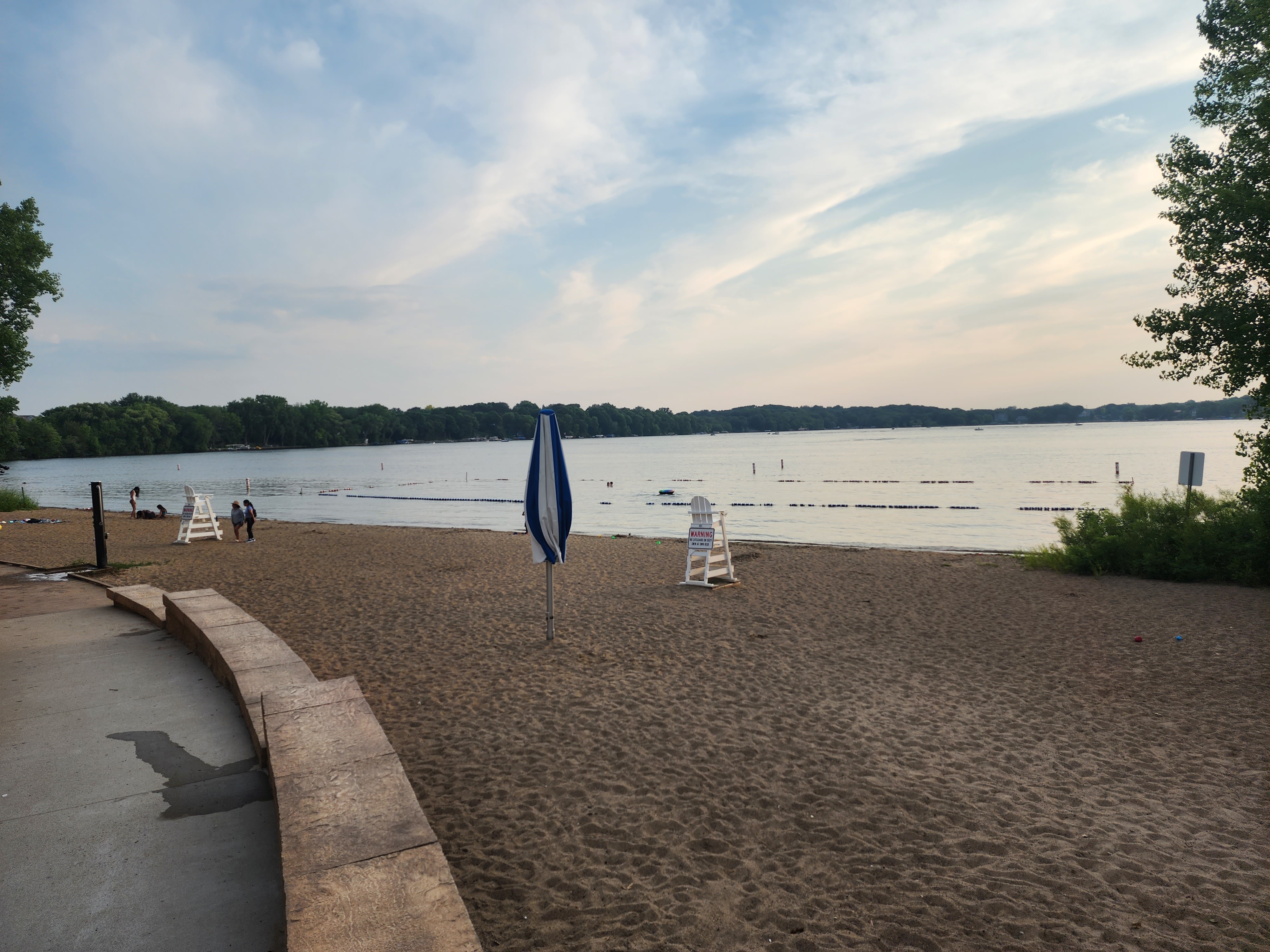 Throughout my life, I had spent a lot of time at this park swimming, playing beach volleyball, and at the park. Yet, I hadn’t visited in several years. You can imagine my surprise when we stopped there recently, only to discover that the park had been updated. Not just a little update, but into such a beautiful setting! Lake Riley has always had it all…sand volleyball courts, tennis courts, a walking trail, disc golf, a swimming beach, basketball courts, a fishing pier, a large pavilion for gatherings or picnics, and a playground. Now, it also boasts pickleball nets with lines set up, a beautiful beach with a nice sand area, sitting areas in the shade and in the sun, and a completely new unique park. We took a picnic to the beach and took a quick swim one afternoon. The kids loved the water and the beach area. Later that week, they asked if we could go to the park where they enjoyed the unusual pieces of equipment that allowed them to climb, run, jump, slide, hang, swing, and explore. My only wish is that there were more safe opportunities for play for my youngest child (1). Playground pieces are definitely geared more towards preschoolers and up. While we played on the park, my oldest also, requested a game of pickleball with my husband. They are always pumped to find pickleball courts. As a side note, there are only port-a-potties at the park. Overall, Lake Riley is a park to visit! Bring your suits, sand toys, volleyball, pickleball racquets, and kids ready to burn off some energy!