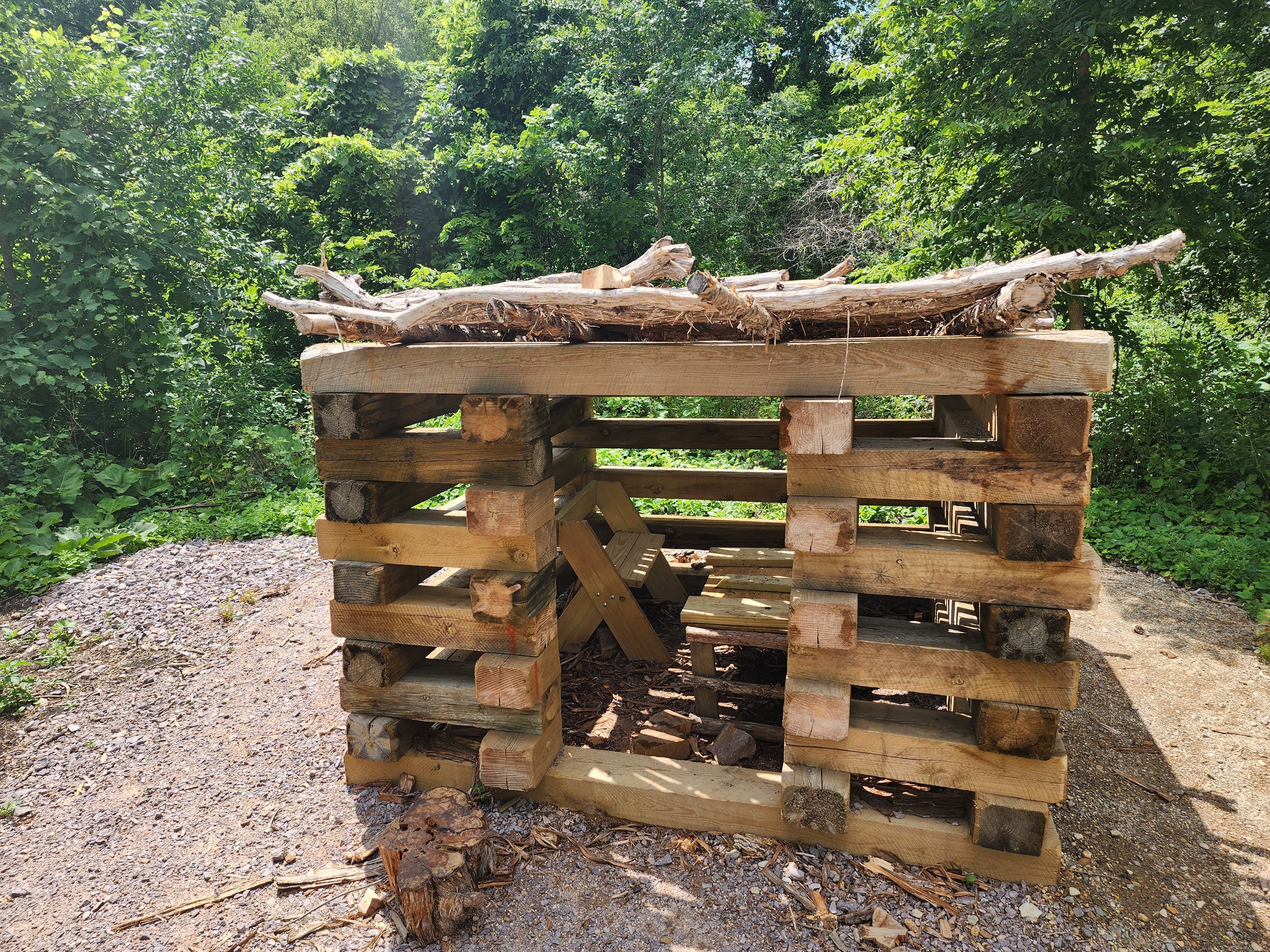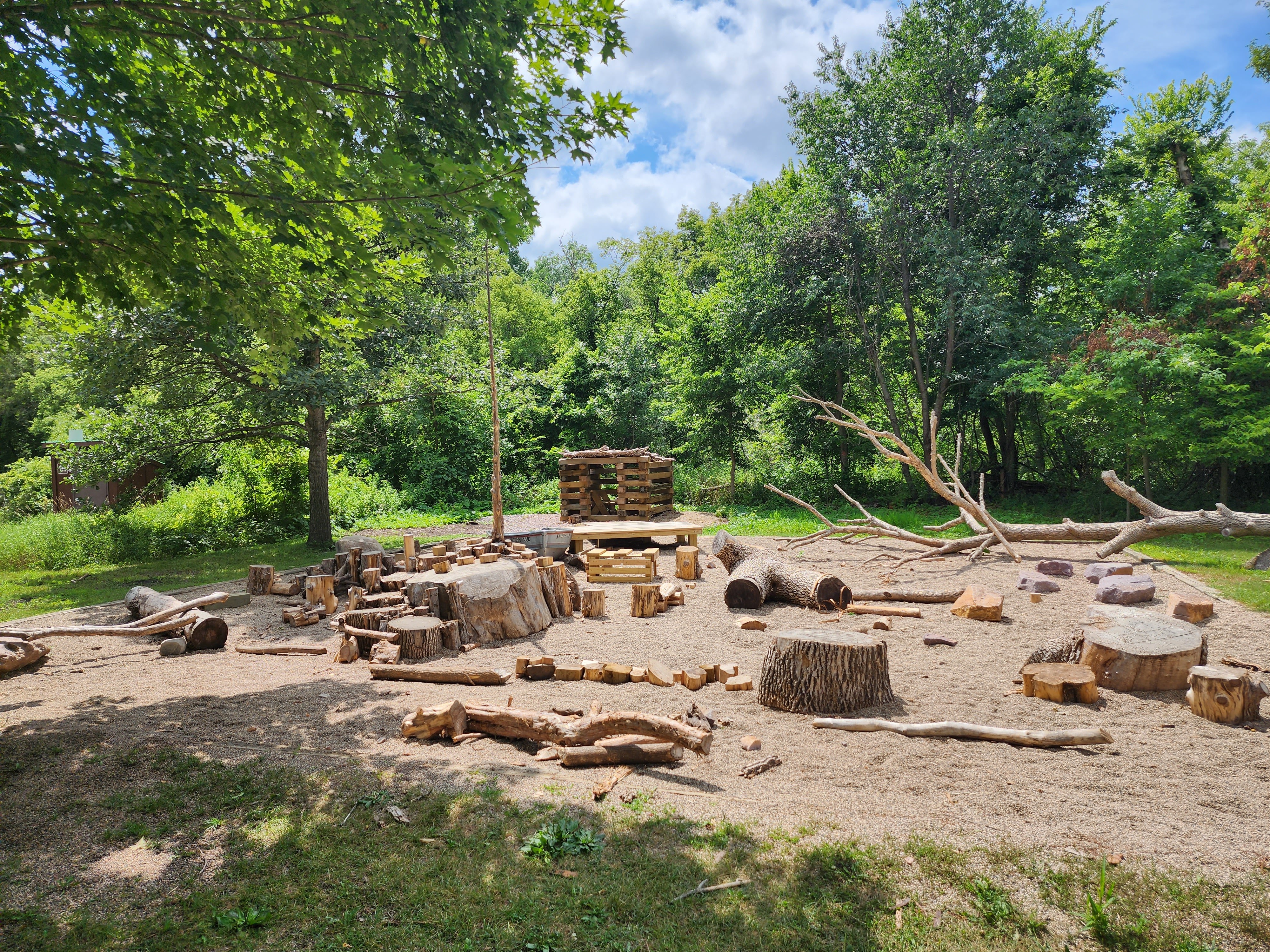 We stayed and swam for three hours that day. Needless to say, all three of our kids would have easily continued swimming and playing longer if we had allowed them to. Between breaks, we ate lunch, had snacks, and played in the sand. There were showers and bathrooms inside the beach house that allowed for easier clean up. As we were walking out, we were shocked to find their playground had been replaced by a nature playground. My kids love these as their imagination always takes off and no time at the playground is ever the same. This particular new nature playground even had a fun boat for imaginative play and a house where I knew my middle child would love to play kitchen.