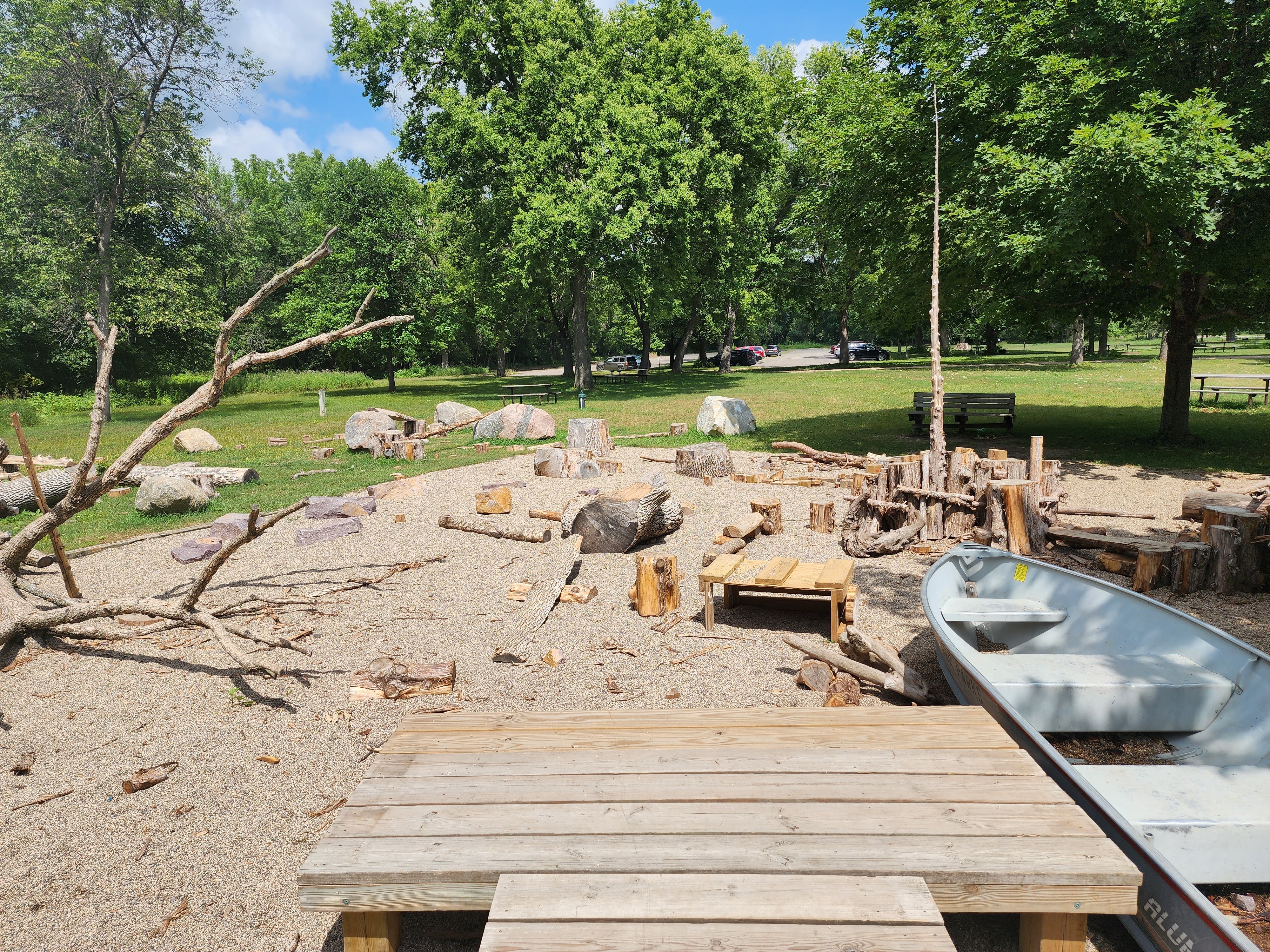 We enjoyed our time so much here that we came swimming again this week too. Again, we were met with a fairly empty swimming pond, water that was clean and felt wonderful in the heat, and a clean beach. This time, we did spend a little time playing at the park and the kids loved it! Their favorite part was definitely the boat.