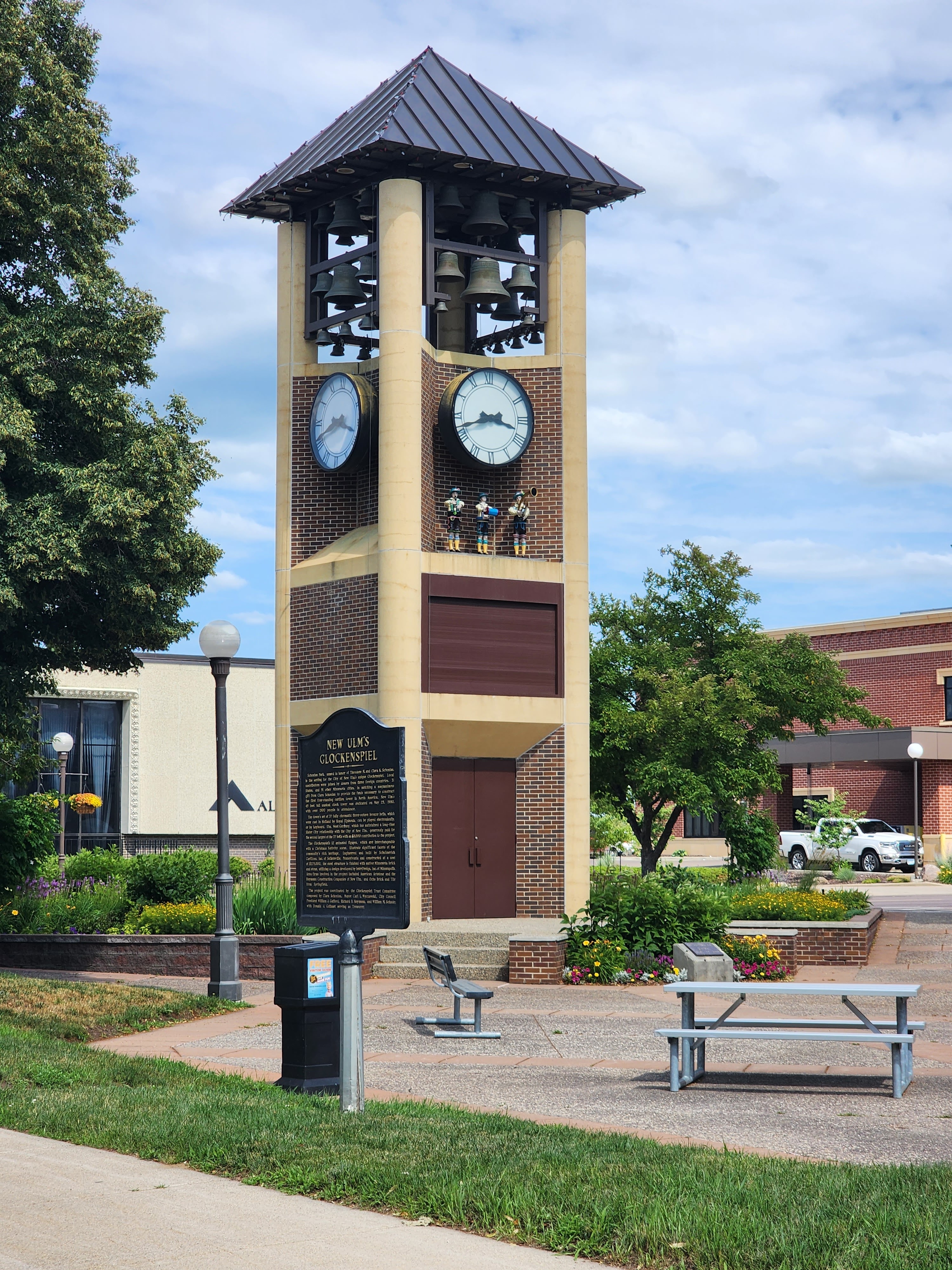 - The fun, Cultural experiences of the town: New Ulm is a German town that has fully embraced their culture. Walking along the main strip of downtown gives you a glimpse into this. Right downtown is their famous Glockenspiel. It has a little show once an hour, which both kids and adults enjoy! Their downtown includes painted fire hydrants, fun road signs, and a variety of shops and restaurants that embrace the culture. We love to walk and explore these places and it always inspires good conversation.