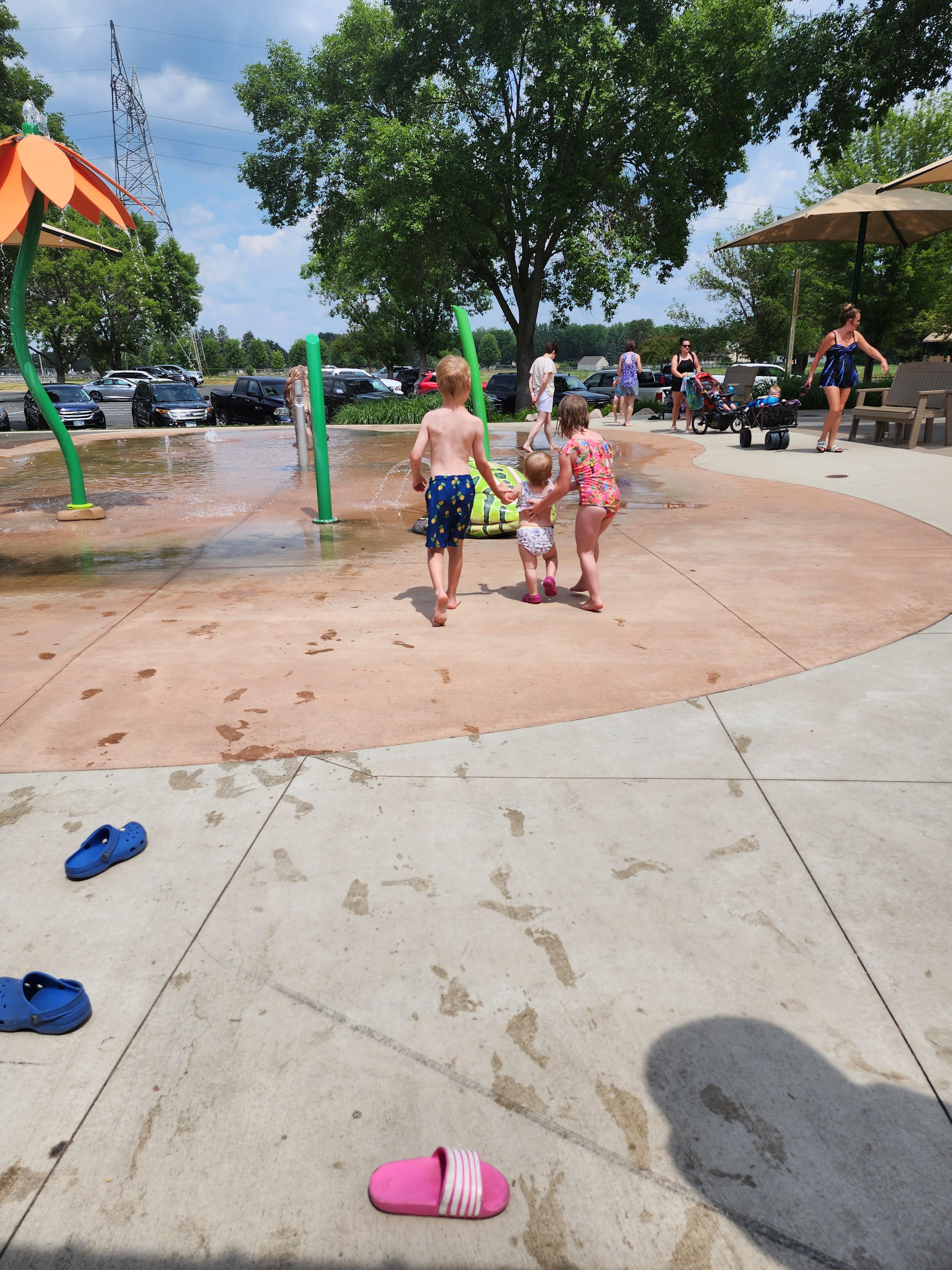 It seems like pools and beaches are closing earlier and earlier each year, due to staffing. Yet, the end of August is filled with very hot days sometimes! I’ve always appreciated that most splash pads don’t close until Labor Day. This way, there is still a fun way for kids to cool off even when everything is closed. Lion’s Park in Shakopee has a cute splash pad that my kids seem to love. I love that there are large umbrellas with benches to sit close by, so I can stay in the shade while they play. Right next to the splash pad, there is a large accessible park. Even in the midst of a heat-filled day, all of the playground equipment was cool enough to play on when we were there. They especially loved the zip lines and the accessible merry-go-round. Since they are right next to each other, our kids loved switching back and forth from the playground to the splash pad. This park/splash pad is located right next to Shakopee’s SandAdventure Water Park. Both times we have been to this park, younger kids and their families came from the water park to allow their kids to run through the splash pad. Definitely a great location for littles to play without being overwhelmed!