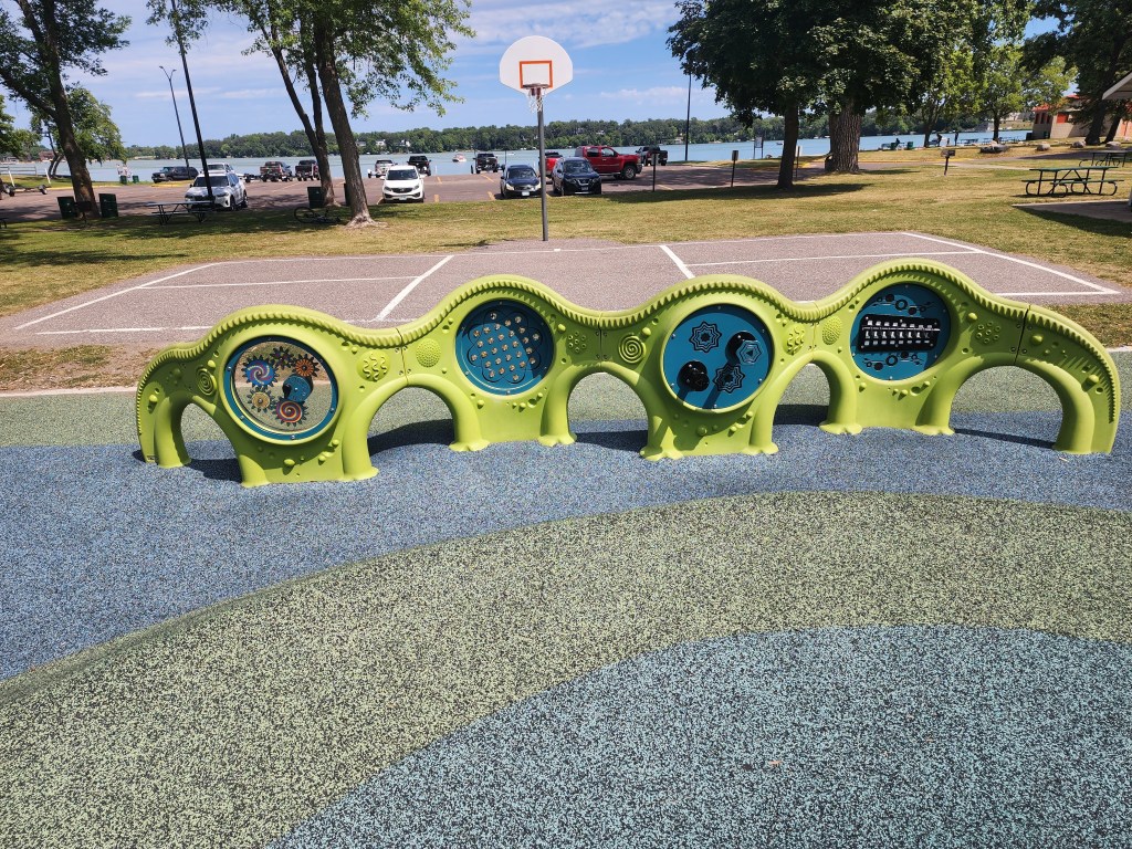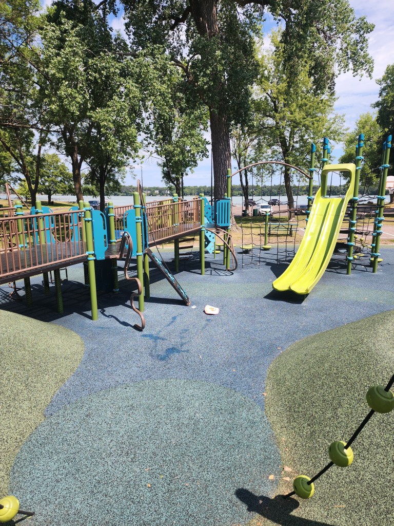 The newer part of the playground is a wonderful accessible park. Containing music elements, two ziplines, a unique climbing structure, and many other pieces, this is a favorite. I love that my youngest child can do many of the same things as the big kids at this park, just at her level. All along the two playgrounds are many picnic tables, including a covered shelter. As you eat, you can watch all kinds of boats, from kayaks to pontoon boats, pass through the canal between the two lakes. This makes it a great location for a picnic. Our favorite time of year to visit Gomsrud is in the fall as the weather and views are still stunning. After you finish playing, treat the family to some treats either at Dairy Freeze (cash only restaurant) or Graffiti Corner.