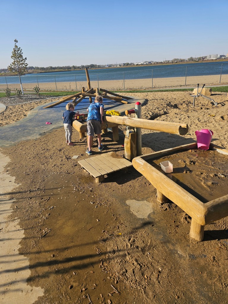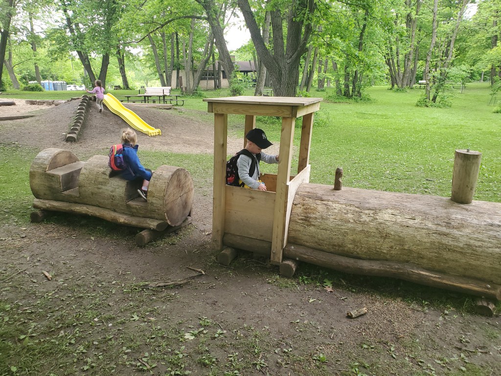 Field of Fun playground- This playground was such a hit with our kids for two reasons. It’s an old wood playground, which kids just find fascinating and unique. The theme of the playground is kind of nature based, with a corn wood maze, an old barn, a little canoe, and a fish climbing wall. Second, they have a huge sand pit with not only sand, but a ton of construction vehicles and sand tools. My kids LOVED this part. We brought a picnic here and ate while the kids played for a long time in the sand.