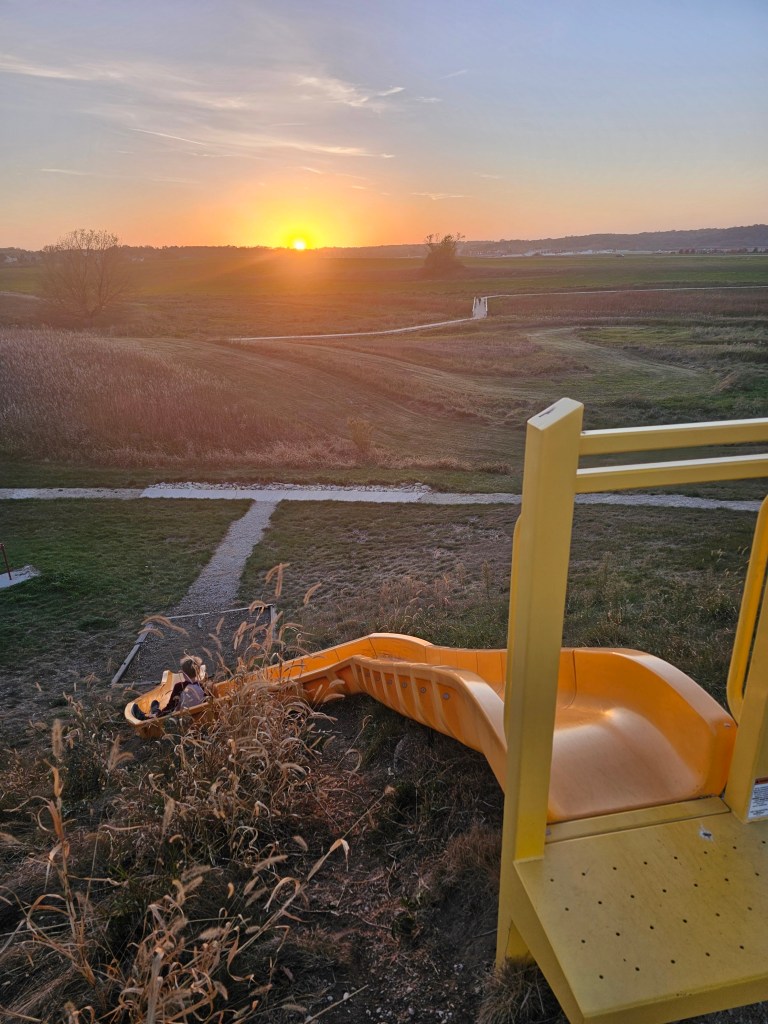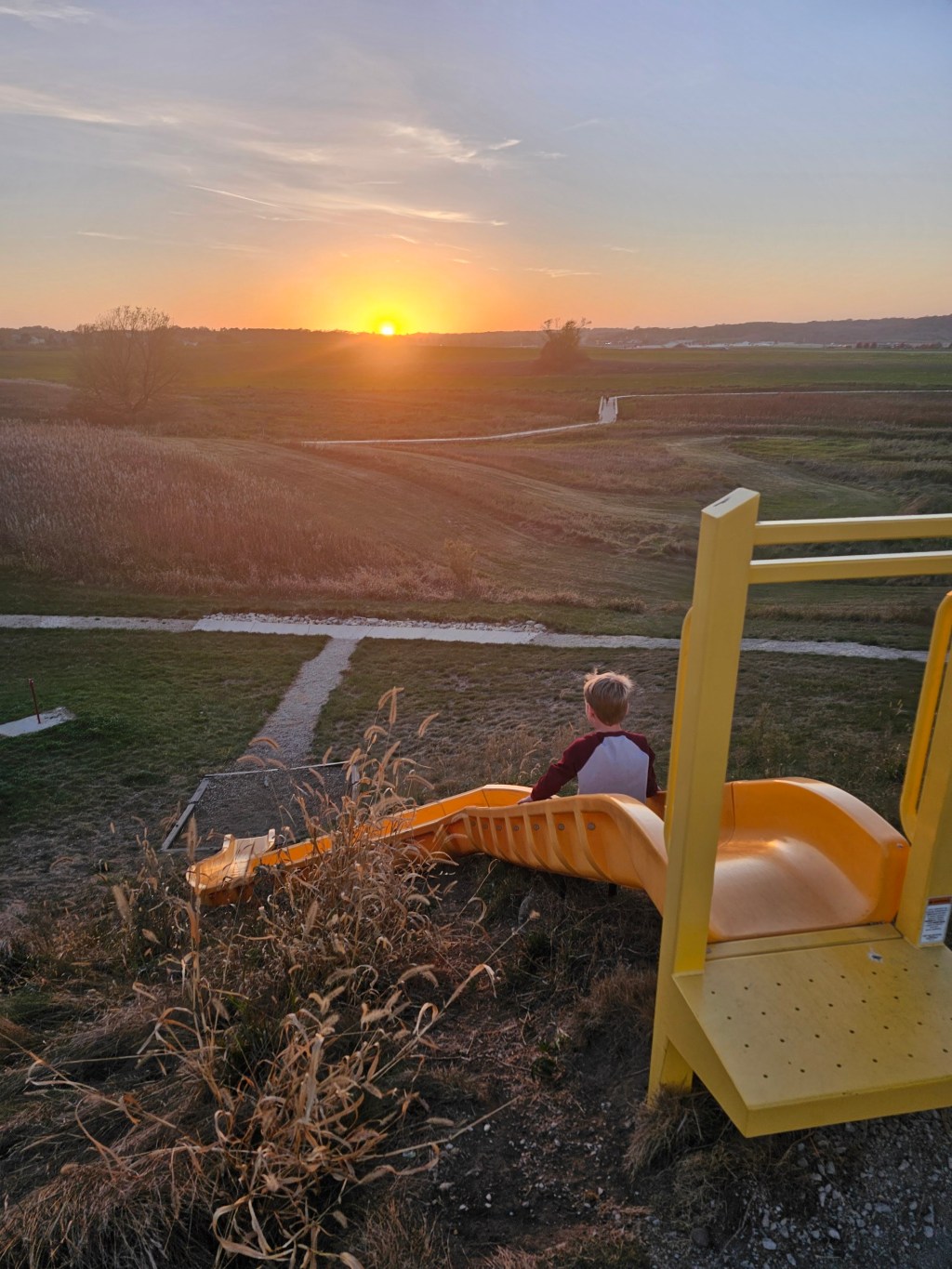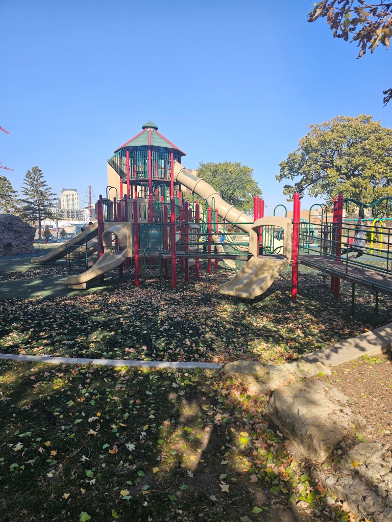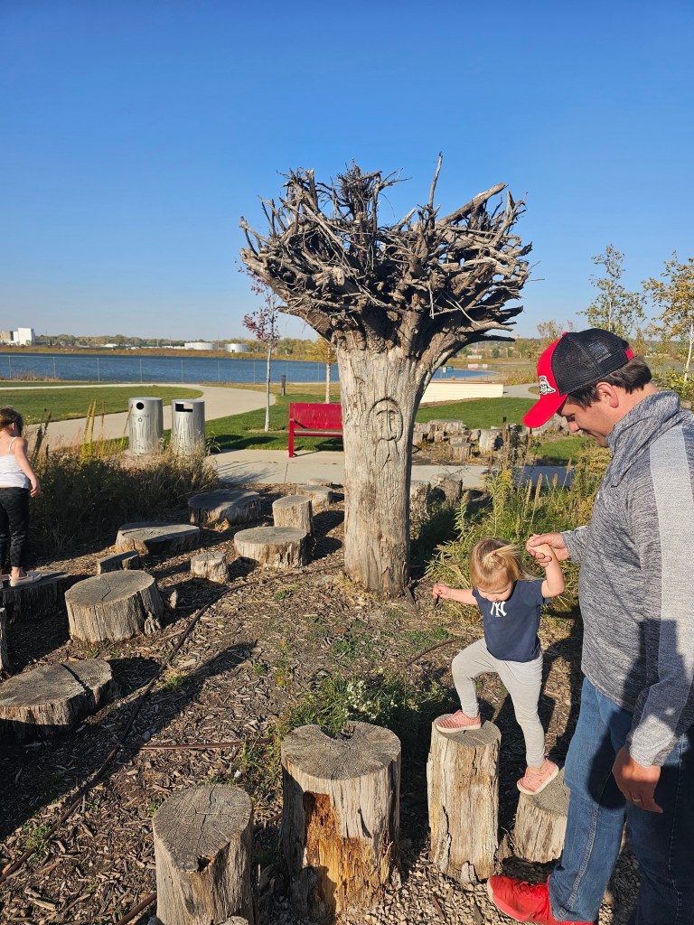 Gamehaven Reservoir: A complete hidden gem, we found this location solely because of where our hotel was located for our most recent trip. Inside this park, there is an oasis of activities including disc golf, mountain biking trails, walking trails including a boardwalk, a nature playscape, skiing trails, and a reservoir that is beautiful. Pulling up to Gamehaven, the nature playscape didn’t look very large. Yet, when you walk down the hill, you are surprised at the amount of play areas hidden within the hill. A rock climbing wall, an area full of building materials and logs, a long slide, a tire swing, a tunnel, and a sand/water area that allow for a wide variety of sensory and play experiences await. During our most recent trip, we actually visited this spot twice because the sun was setting as we arrived the first time. This allowed for beautiful views, but not a ton of time for play. On our next trip, we let the kids go mountain-biking on the trails, which they enjoyed and we loved seeing the fall foliage. I also, walked along the boardwalk which gave stunning panaromic views of the city. My son was very intrigued by the disc golf courses as they had unusual and fun obstacles, but we had forgotten our discs. This spot is definitely a must-visit location when you go to Rochester!