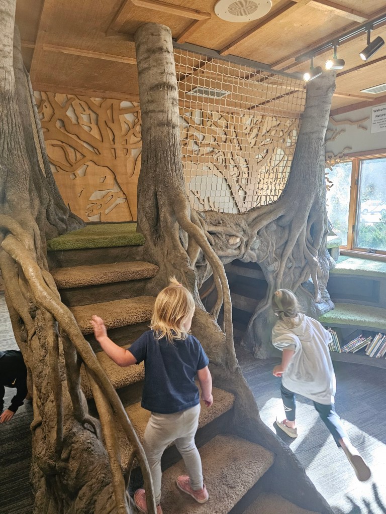 Another spot that we have stopped on our way to Rochester was at Oxbow Park and Zollman Zoo. This is a must-visit place! I have a whole blog post here about this gem and we always make a point to stop there on our way to other adventures. Not only is the zoo all Minnesota native animals, but they have an amazing natural playground for kids. It’s also donation-based. Recently, they re-did their nature center and it’s a fun spot with some play, learning, and animals.