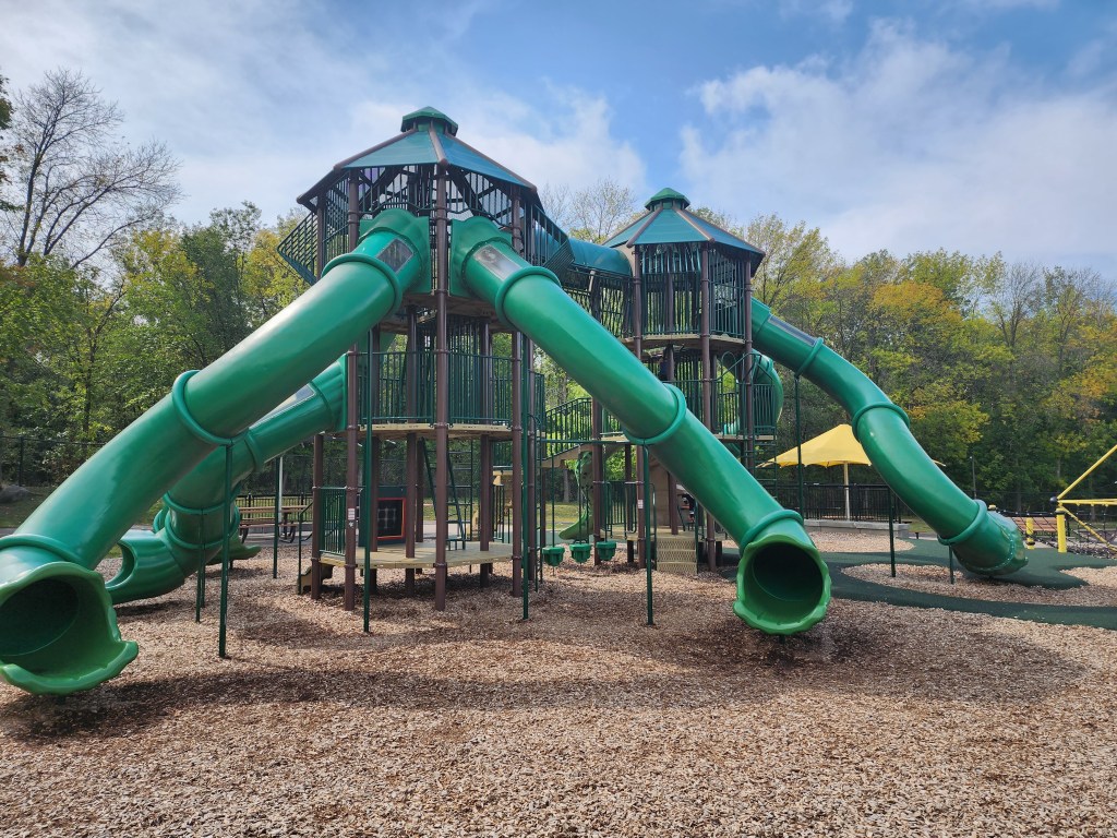 If you’ve never been to this park, I’d say it’s a must-visit! Everyone always raves about Chutes and Ladders (Hyland Park) in Bloomington, Minnesota. Yet, I feel this park is definitely right up there as well and it’s not as overwhelming for kids/parents. It’s much easier to see all parts of the park, even sitting down at a picnic table. Located in Maple Grove, there is lots to do at this Three Rivers Regional Park. One of our favorite nature centers is also, located here (Eastman Nature Center). I’d definitely plan a long morning or afternoon of exploring.