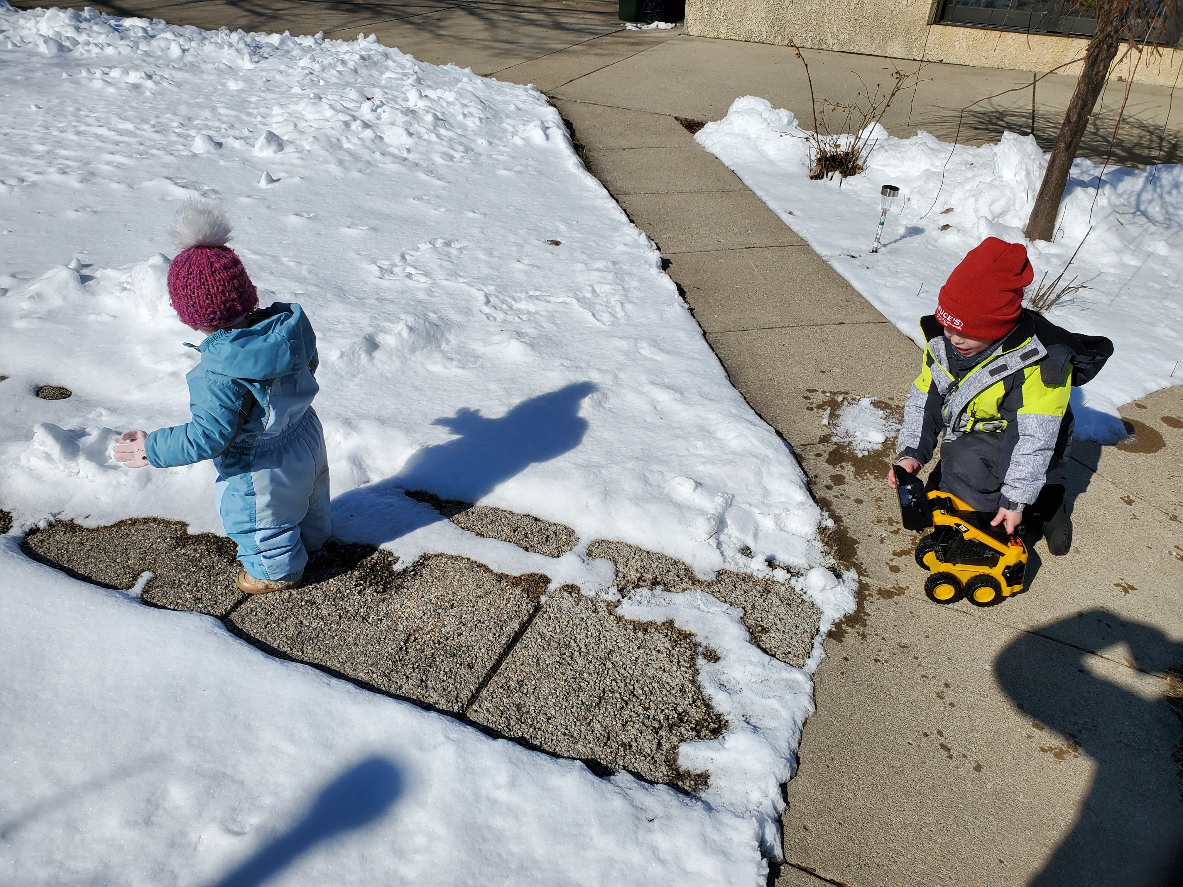 *Bring toys along for the walk. I am always surprised at how helpful this tip is as it seems like it would be more work. However, it often proves to help everyone walk longer. Our favorite toys to bring along are the stomp rocket, a sled, buckets, and construction toys. Often, we shoot off the stomp rocket before or after we walk in the parking lot. This is such a fun toy to use in all weather. The sled is helpful because you never know when you will come across an area that your child can sled down. Also, if their feet get tired, you can pull them behind you.