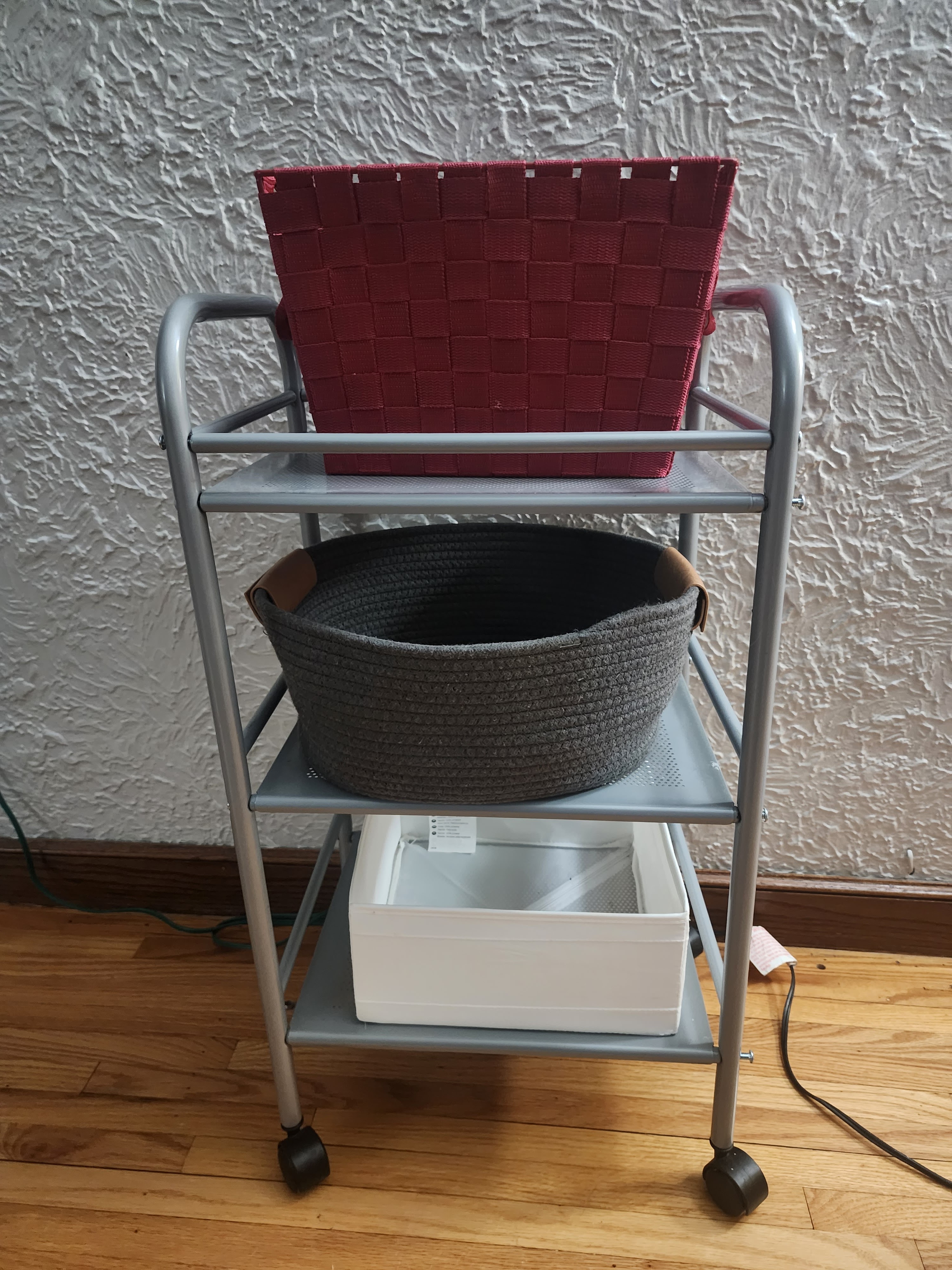*Set up a winter cart for gear. This has been another game changer for us. When the weather begins to turn cooler, I set up our winter cart in our entryway. Each shelf has a different bin with either hats, gloves/mittens, or gators. Being on wheels, we can wheel it right to the location where the kids are getting ready. This allows all kids to be independent in their ability to grab their gear and put it away. Even our 1.5 year old can do this! It also, promotes independence in learning to put their gear on by themselves. One other plus is that their gear is less likely to get lost because there’s a place for it right when they come in the door. Before I started utilizing a winter cart, I despised getting the kids all ready to go outside for only a few minutes of play. Now, all kids need minimal help from me and are way more efficient at putting their gear on quickly. This gives us more time to actually play!