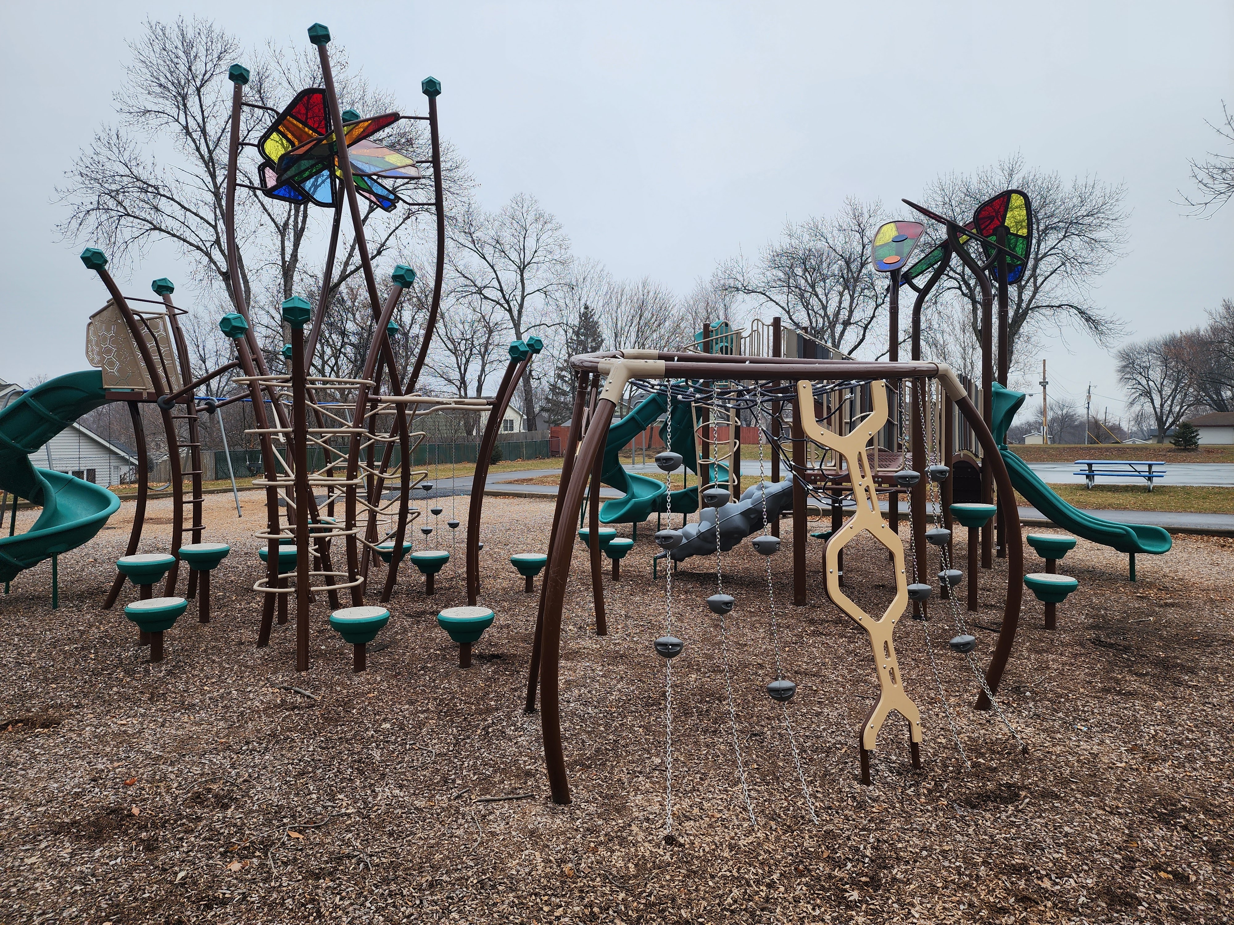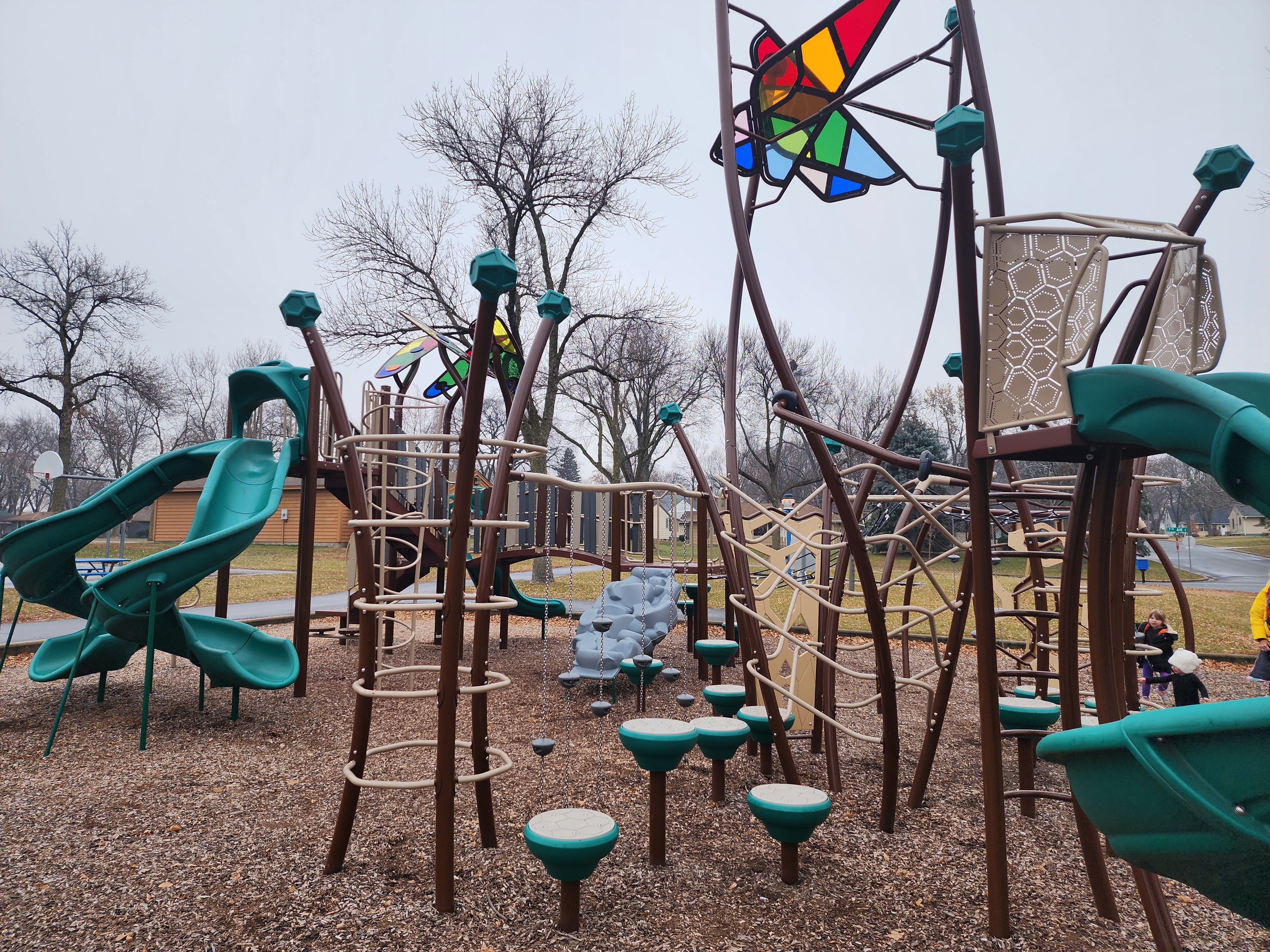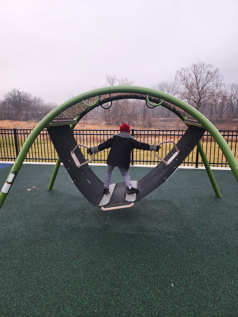 Arriving mid-day, we started our day at Huber Park. Growing up, this park had been an all-wood park that we enjoyed! It was quite the surprise to see the difference in the park and all the accessible options available now. This park now has almost everything you could think of, but on a small scale. It’s not a huge park, but they definitely packed all the fun in. A large climbing playground with so many fun additions, a small toddler playground, swings, a zipline, an accessible swing, and the new version of a merry go-round complete this park. Fenced in, this park has a beautiful view of the Minnesota River and the outdoor amphitheater. I’d definitely recommend this park for any age group…there’s something for everyone to enjoy.