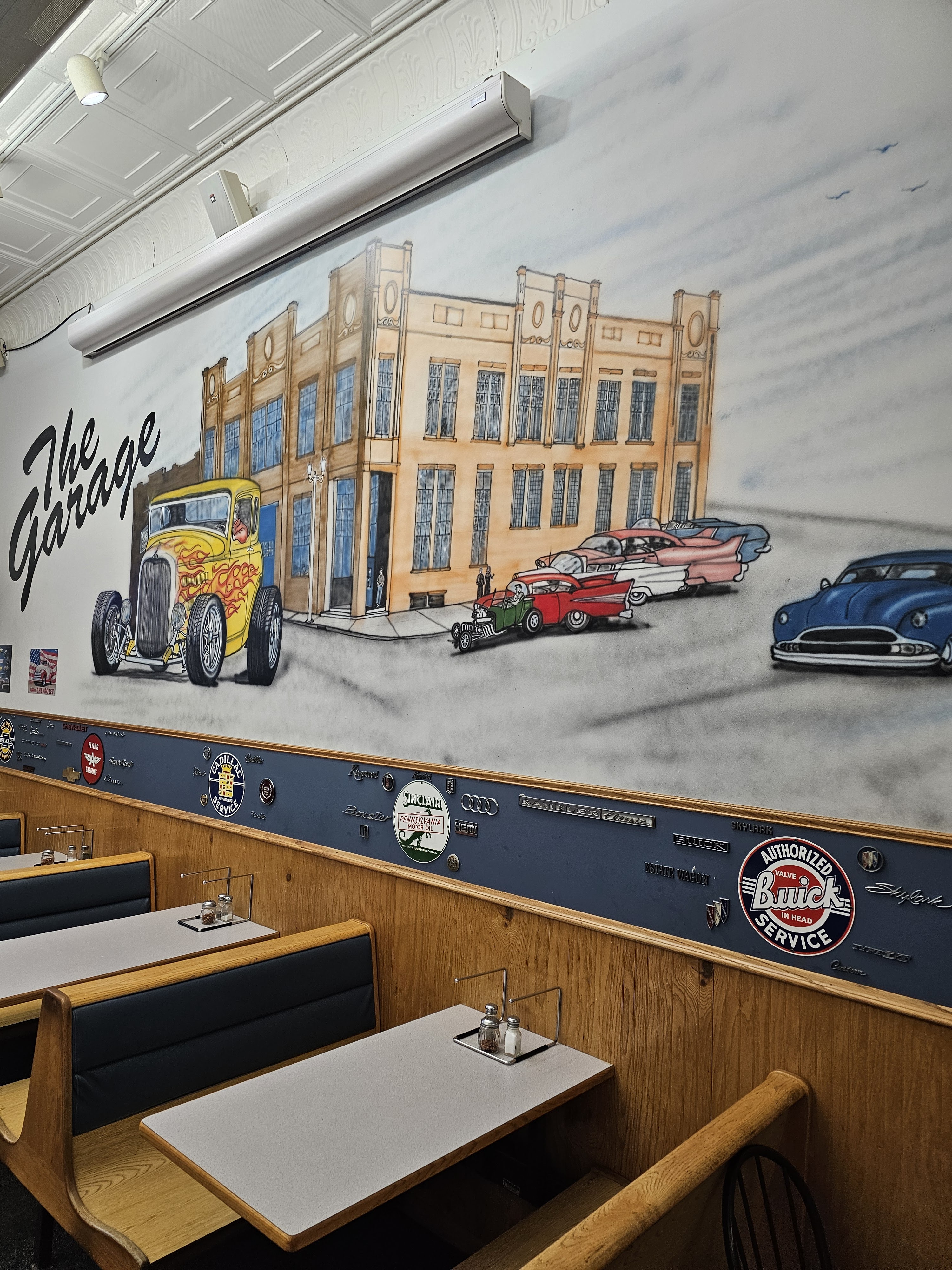 One thing to know before you visit is that google is not accurate in their hours of this location. Always make sure to call ahead to see when they are open. We did not do this and were shocked to find that the bowling alley didn’t open for a few hours from the time we came in. Luckily, the Garage was open. So, we decided to get a few appetizers and ice cream for the kids. While we waited for our food, the kids were able to explore the many car details located throughout the restaurant. Even though our family isn’t huge into cars, the kids loved seeing all of the small details around. When we came into the Garage, a line of people came after us. So, we were pleasantly surprised when the food came out so quickly. The appetizer plate was absolutely delicious. Ice cream had flavor bursts in it and each kid got to pick a different flavor. They loved the ice cream! Prices were very reasonable and everyone finished with a full belly. Later, when we were talking to the owner, we discovered they are known for their pizza. Many others around us had ordered pizza while we were there. Again, the pizza came out quickly and looked delectable.