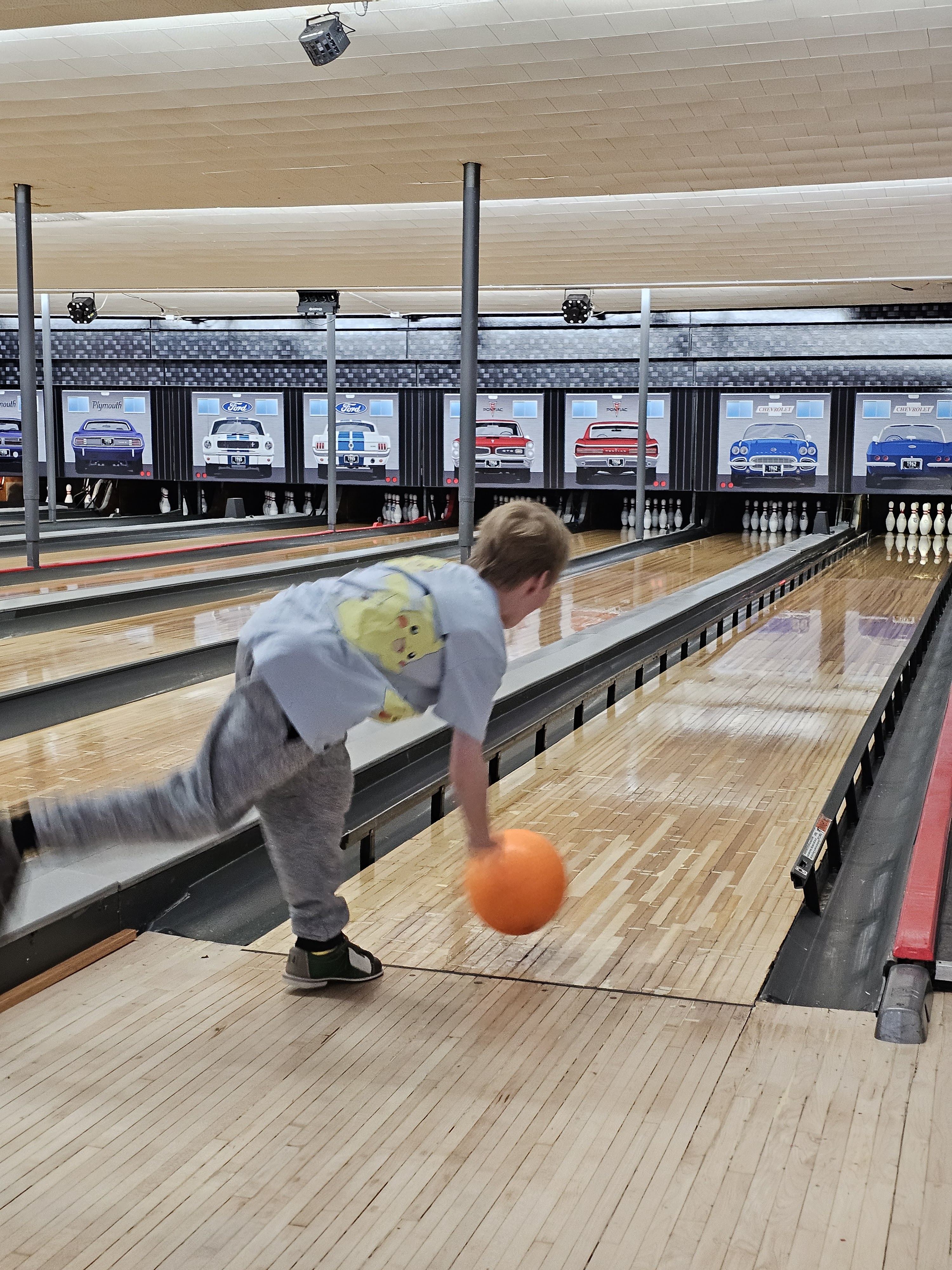 At this point, we had thought we would need to kill some time before bowling, so were planning what to do. Shockingly, the owner came out to us and told us he could open early for us since it wasn’t too busy now. This was a true representation of the type of business it is. They are all about their customers and the experience. Walking into the bowling alley, we were floored by all the details in the decorating. I immediately felt that cozy feeling I used to get at the family-owned bowling alley I went to as a kid. One unique aspect of this bowling alley is that shoe rental is free! When you come to bowl, you just pay per game. While getting our shoes on, the owner was quick to set up the bumpers and give us a ramp for our middle child to make the bowling experience enjoyable for everyone.