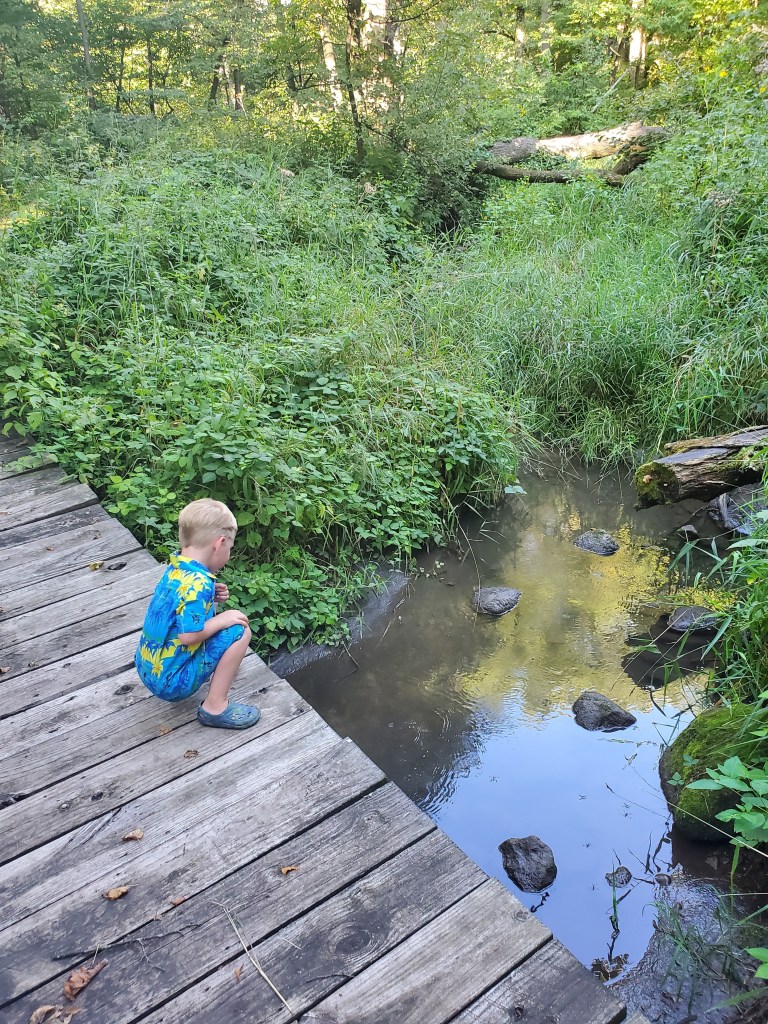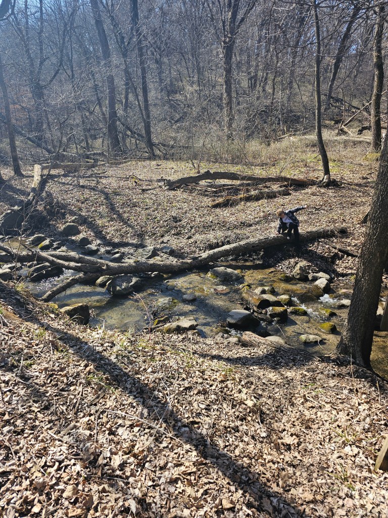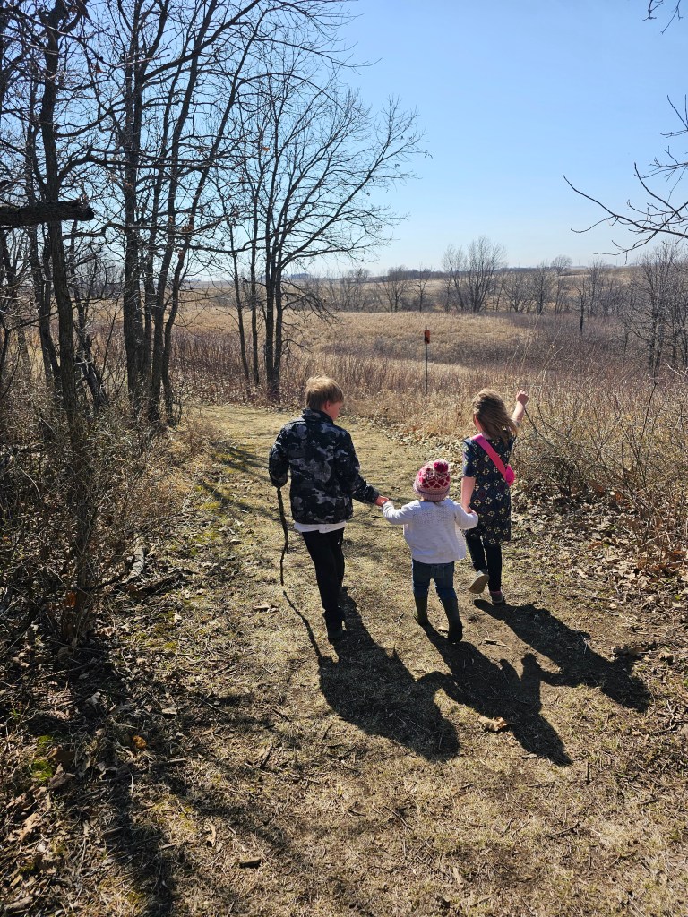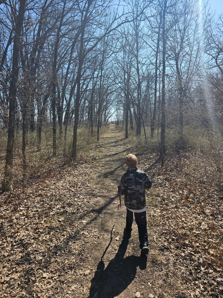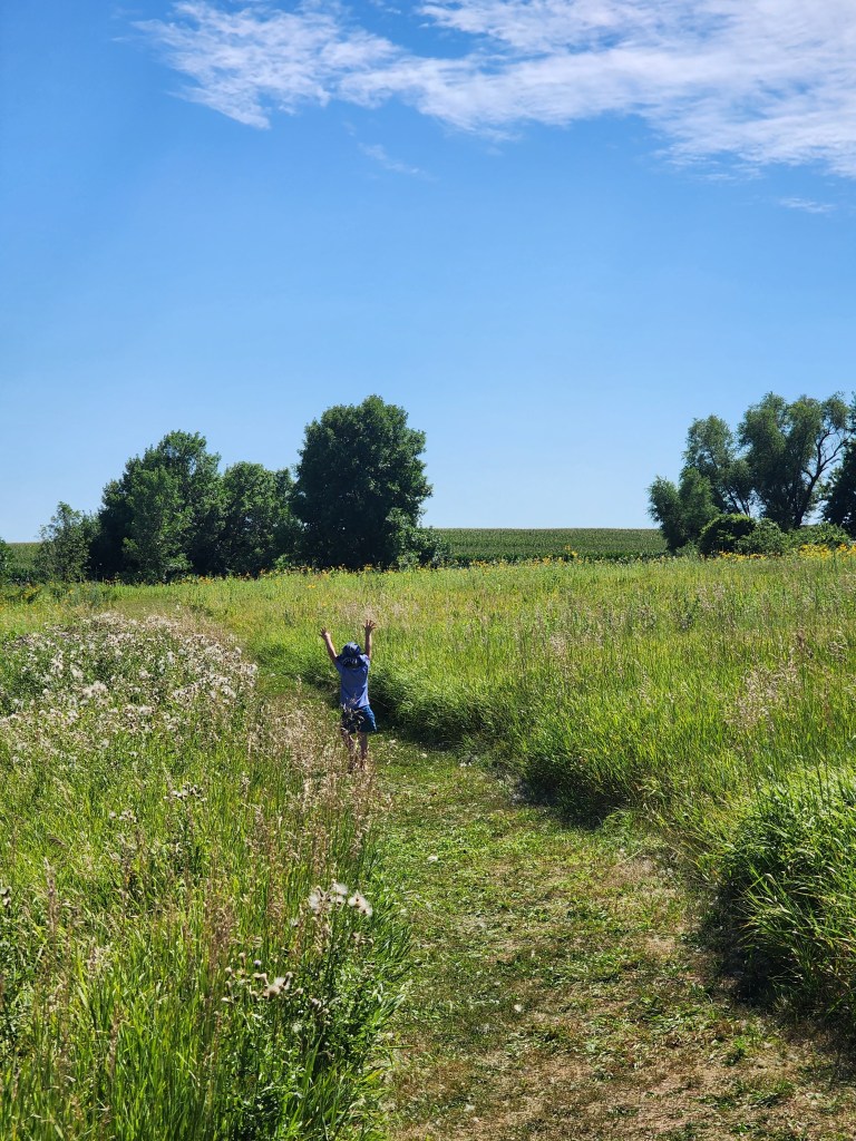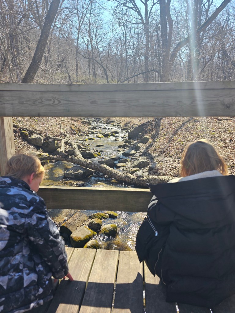 Our last stop for the day was at the stunning state park called Kilen Woods. This has been a family favorite for a few years because of the variety of terrain available for hiking here. Following a trail, you are fortunate to go through everything from a river to a creek to woods to prairie to corn fields. Since the scenery is constantly changing, it really keeps the kids engaged. Also, most of the hikes are not too long, so kids can feel confident in their skills. Another thing that we love about this state park is the small creek that kids can safely get close to and play in. There are rocks to jump across, rocks to skip, and logs to cross over. A variety of bridges are at this state park too, which my kids love to go over! This park is one of those locations where you keep visiting during each season because every season there is stunning. One winter we took a snowy hike here and were pleasantly surprised to see about twenty deer running through the woods. It was beautiful!