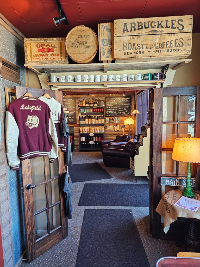 Next, we headed to SOJO coffee company right down the street. Pulling up, we were shocked at this cute coffee shop in such a small town. A drive-thru window is perfectly placed for those who need a quick coffee pick-up. Walking into the coffee shop, hundreds of memorabilia from Lakefield and surrounding towns filled the walls and shelves. Our kids were instantly glued into looking at each special item. This coffee shop is one of those places where you instantly feel at home. After ordering, we sat down to continue admiring some more of the pieces scattered around the shop. Some games were available for the kids to play with as we sat and talked. Much to my delight, the iced caramel macchiato was by far the best I’ve ever had. My husband loved his drink as well. We will definitely be back to enjoy more delicious drinks from this spot!