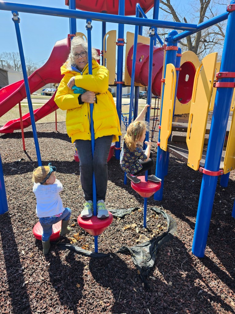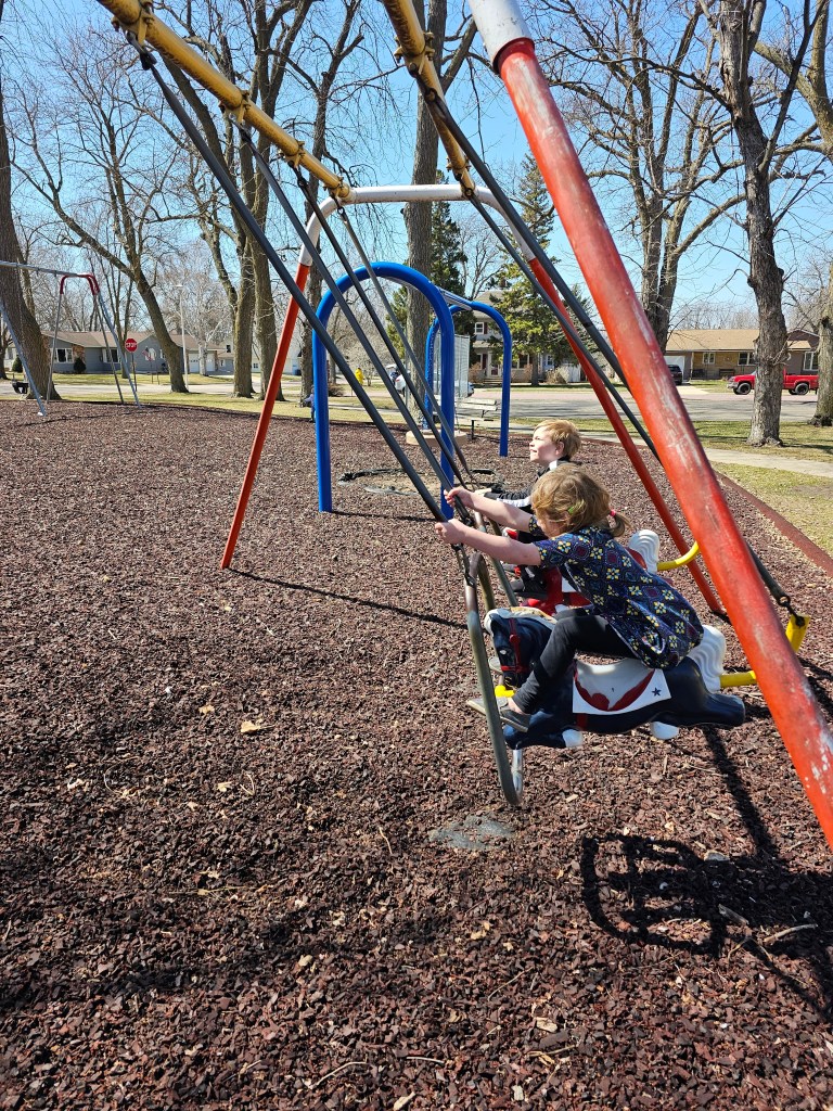 As we finished our drinks, we checked out the North City Park. It was the perfect mix of new playground equipment and older playground equipment. My kids usually seek out some of the older equipment because it’s unique. Of course, they ran to the animal swings where they could push themselves. Their laughter as they went back and forth was truly contagious. Other highlights of this park were the baseball field where my son and husband played catch, an older metal slide that our youngest loved climbing up and going down, a dinosaur to rock and ride, and some unique climbing fixtures within the larger playground structures. They also, had a smaller playground area for younger kids and a digger for the sand. We spent at least a half hour at this park and could have stayed longer.