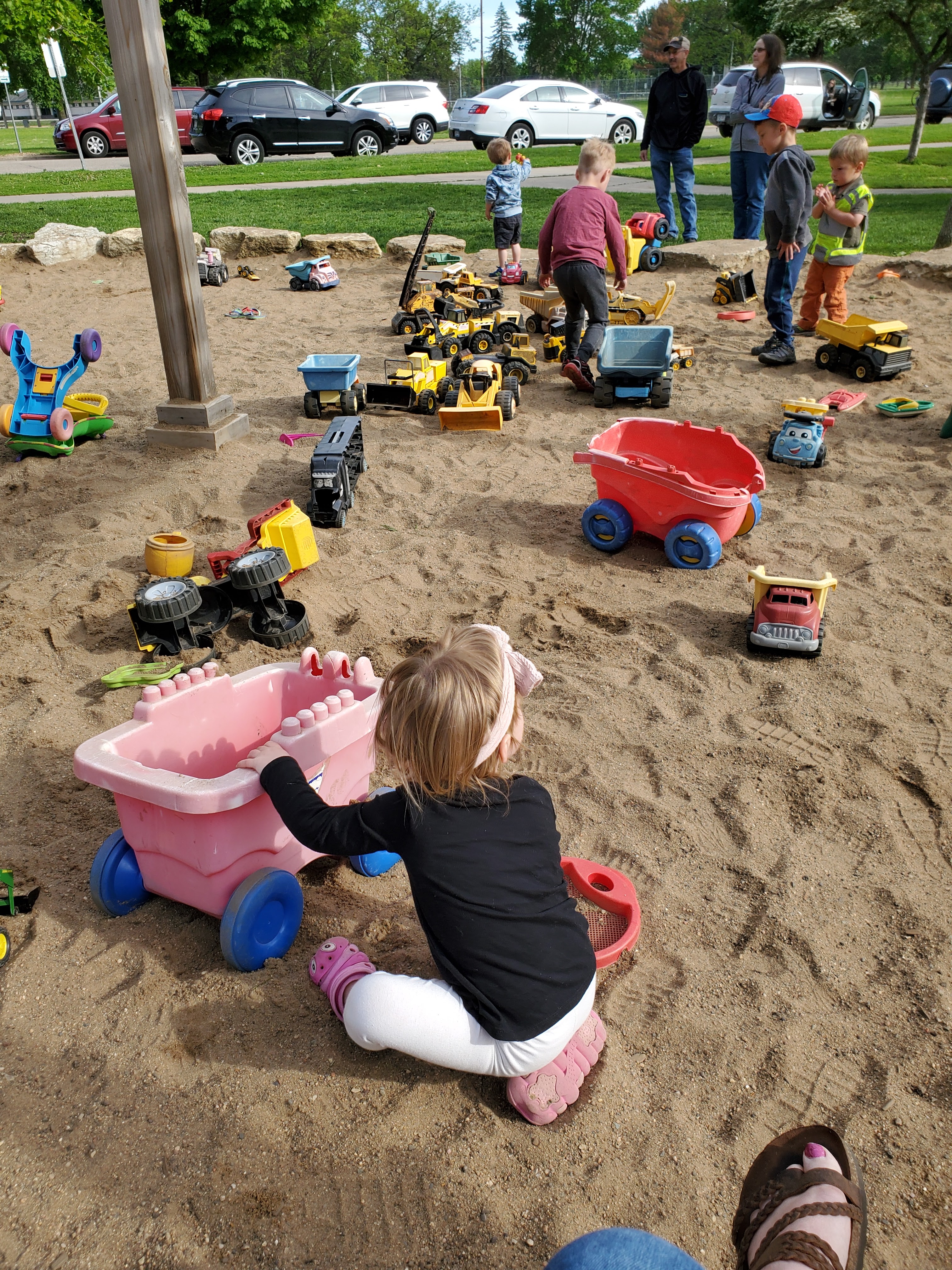 Our final stop before making it home from this trip was Field of Dreams in Rochester, Minnesota. We had been here before and it was an instant hit for our construction loving boy. Not only is the park a fun, older wooden park that seem so rare in today’s age, but there was a huge sand pit right outside the playground. In the pit is tons of construction vehicles and sand toys to play with. It’s a good playground with a variety of play spaces to keep kids of all ages engaged and having fun. Then, we were on our way home.