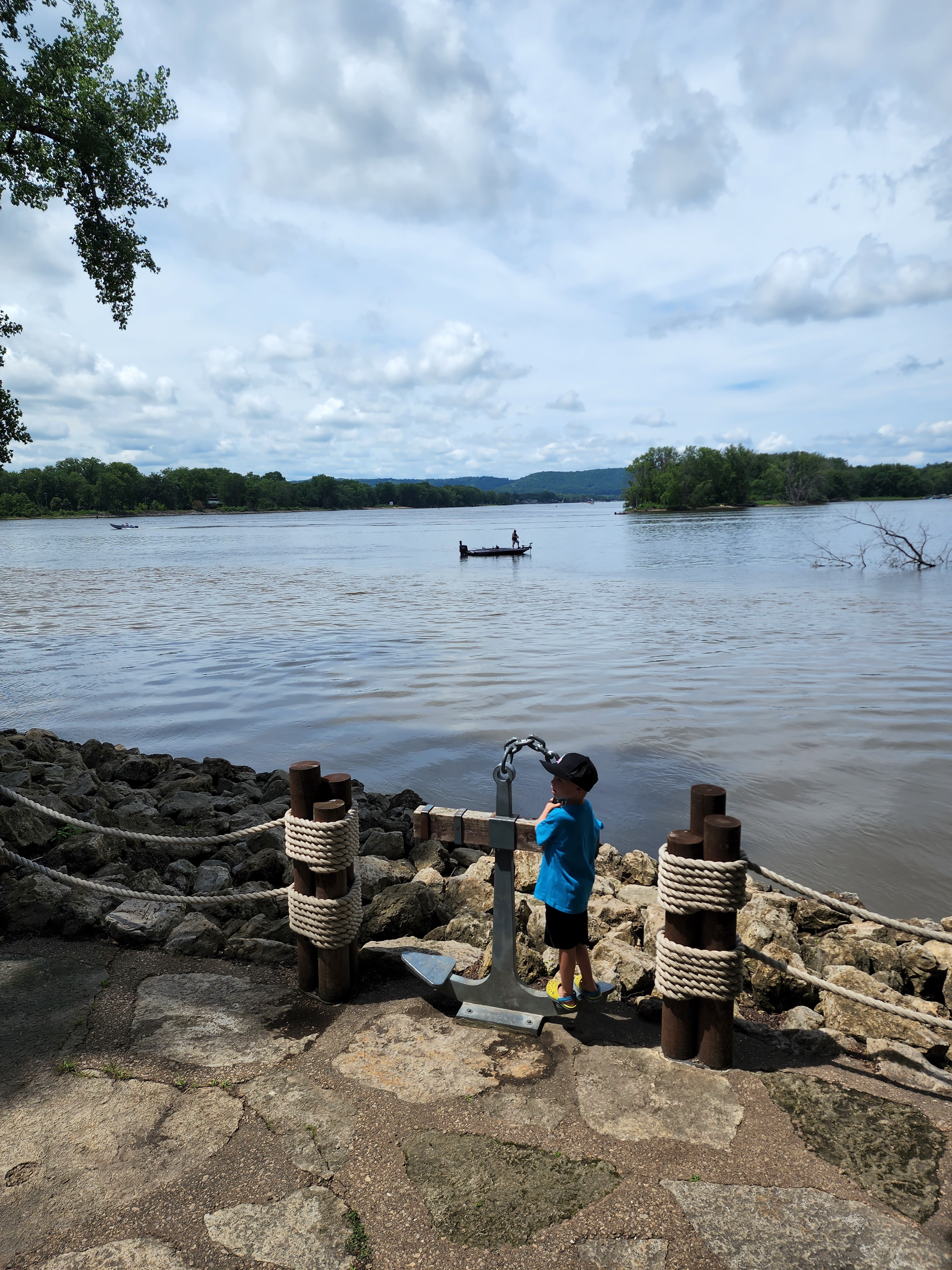 Next, we stopped in La Crosse for the LaCrosse Children’s Musem. With our Science Museum of Minnesota membership, we were able to get in free at this children’s museum. Packed with tons of favorites, our kids enjoyed the water table area, a Kwik Trip (if you know, you know) play gas station, and a dinosaur hunt maze. A large climbing playground structure was another favorite, as well as a virtual screen they could play games on while moving their bodies, a fire truck, and a construction area with a crane. There was also, a space for kids under three that our four month old enjoyed. As mentioned above, there was expected severe weather while we were at the Museum. It actually ended up turning into a tornado watch and everyone was told to report to the basement until it was clear. Truly, there was no better place to be! Our car was safe in a parking garage from any damage from the storm. We were safe in a basement, with tons of play exhibits. Museum staff were so calm and kept details to a minimum in front of the kids, so all kids just continued to play without feeling any fear. It was by far the most pleasant tornado watch I’ve ever been in.