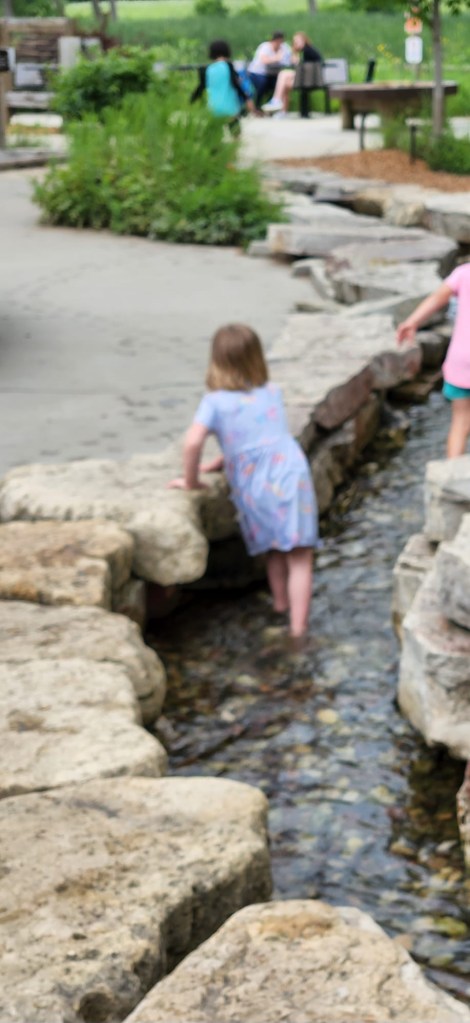 When we set off on the next day, our first stop was at the Bison Nature Playground in Schaumburg, Illinois. This place was by far one of the coolest spots I’ve been to. It is $2 for resident children (2-12 years old), $3 for non-resident children (2-12 years old), and free for adults and children under 2 years old. There are hour time slots in which you get to play to limit capacity, so try to get there before the time slot begins. All of this being said, this place is definitely worth it! Not only is there nature inspired playground equipment, but there are also natural materials for kids to play in throughout the space. It’s a HUGE nature playground, so there is plenty for kids of all ages and abilities to do. Some of the favorite parts for our kids were the natural water feature where kids could walk, play, and explore within a rock bottom water stream. They also, loved the sand area where they could dig their hearts out. Climbing opportunities were endless and were accessible to all age groups. A nature center was also, at this location, but we were unable to explore here as we needed to get back on the road. To put it simply, this is a must-stop location if you are in this area. Your kids will LOVE it!