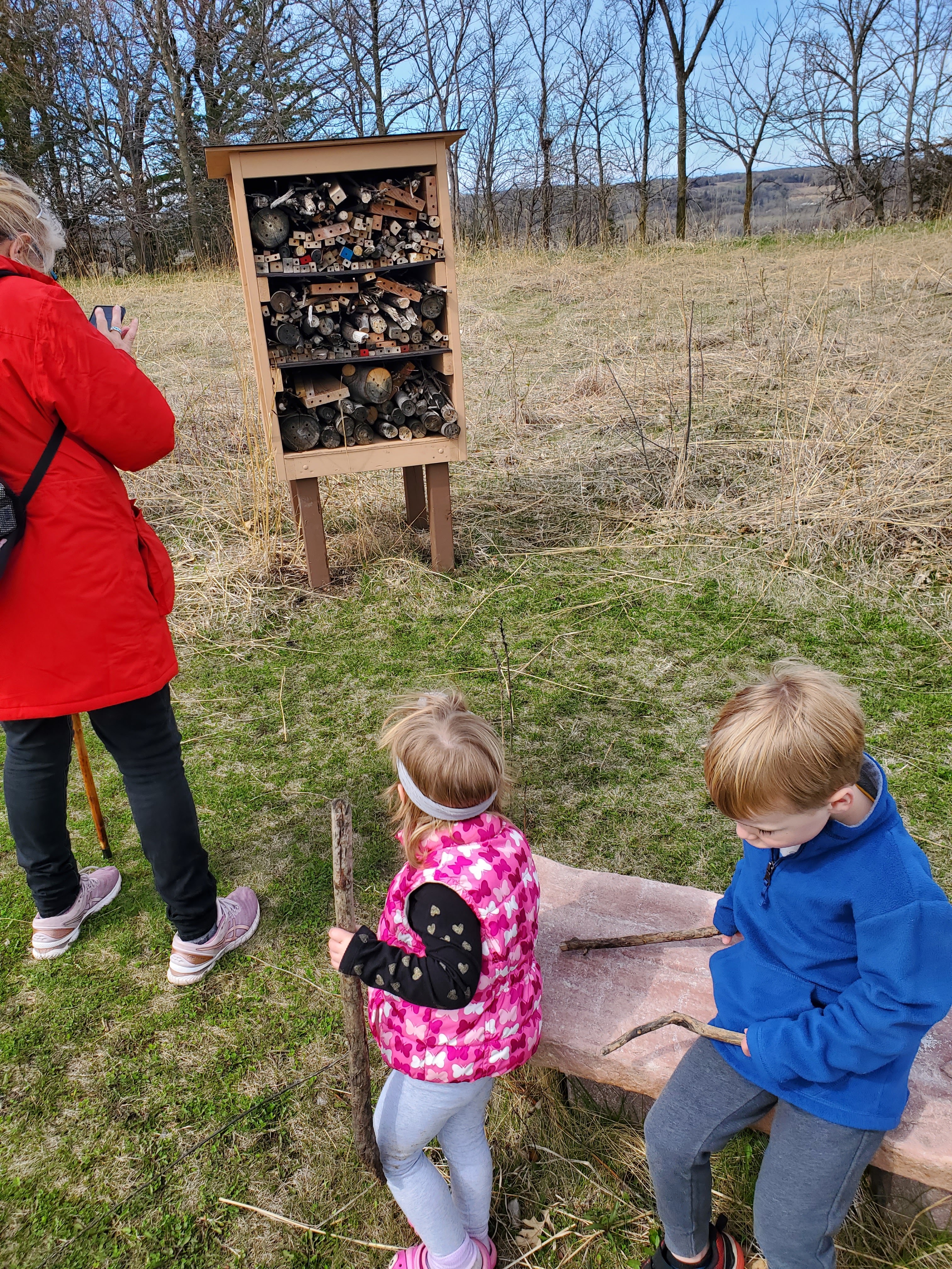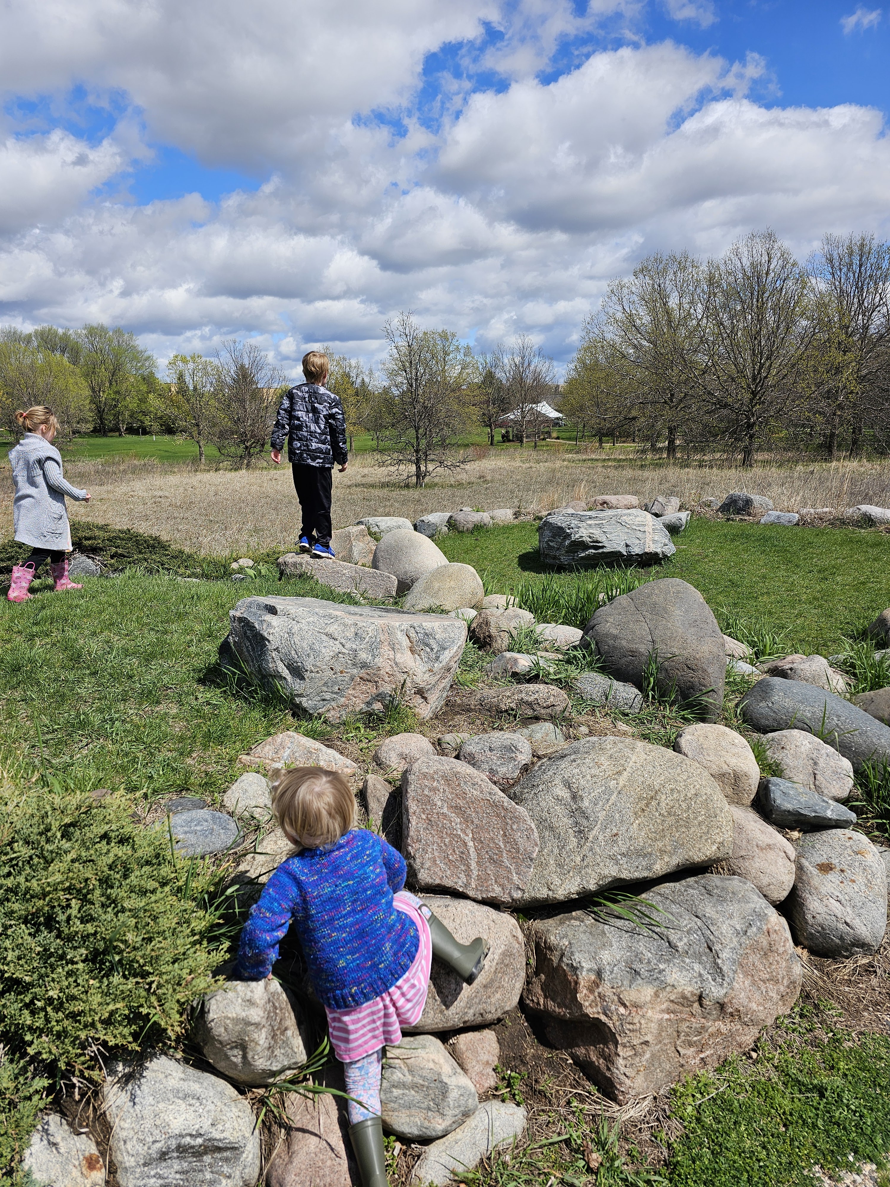 Another favorite spot here for my kids is the natural playscape. They have added to it through the years and we were pleasantly surprised to find even more to play on this time. A large deck above one of the ponds is also, always a hit. We are bound to see nature either in the water or around the deck. Later in the spring, a greenhouse is set up usually and the kids like to explore here as well.