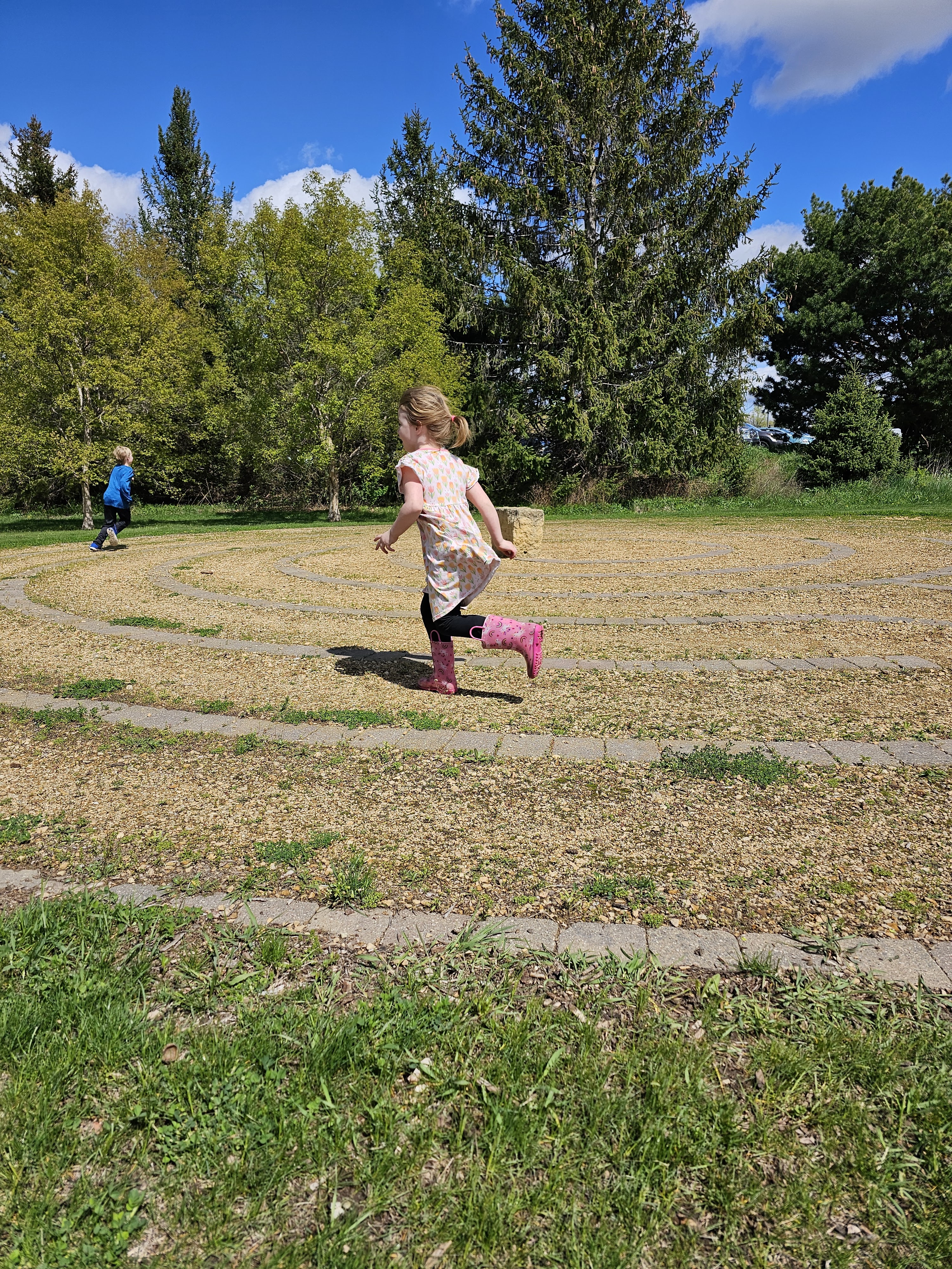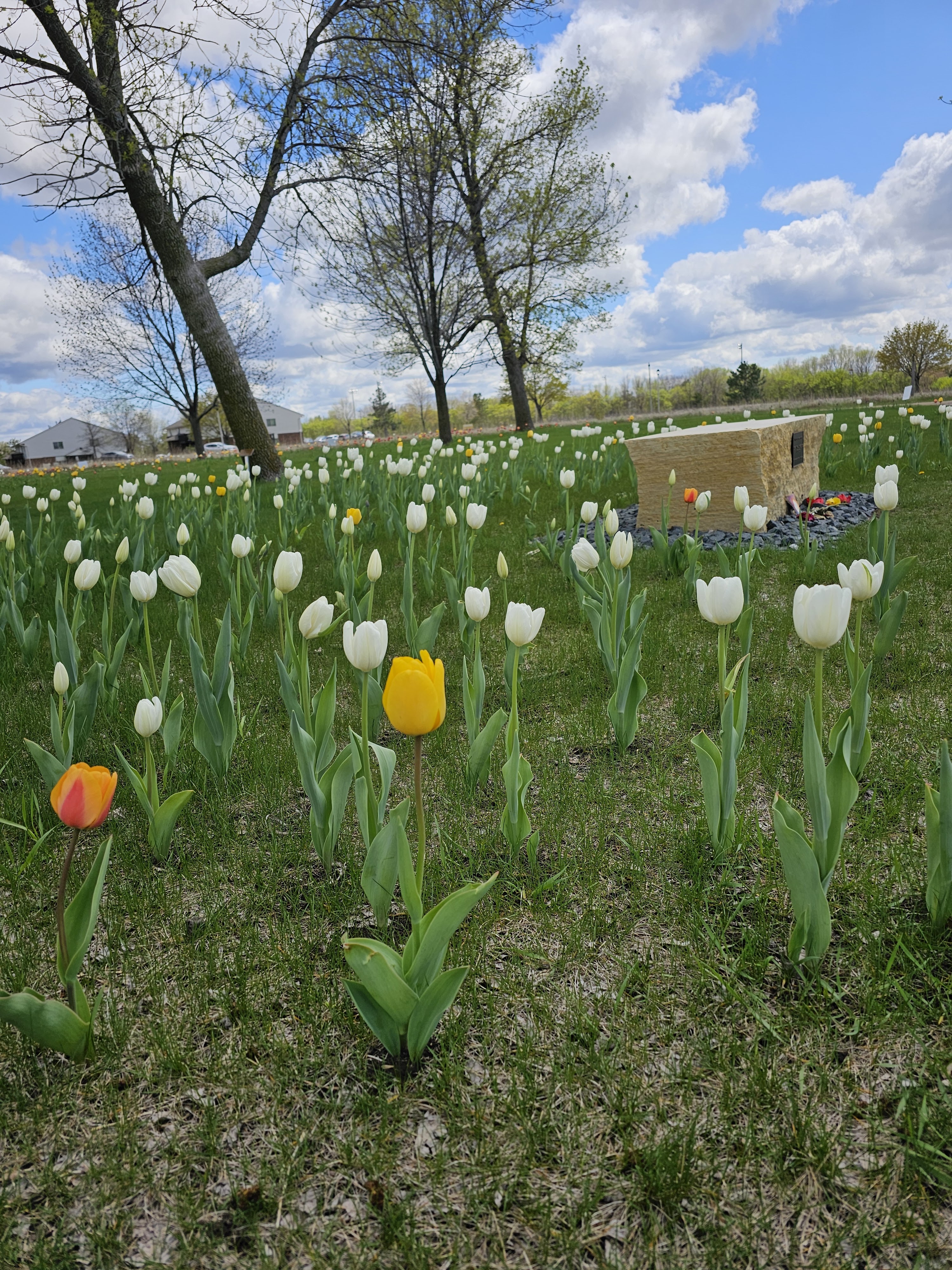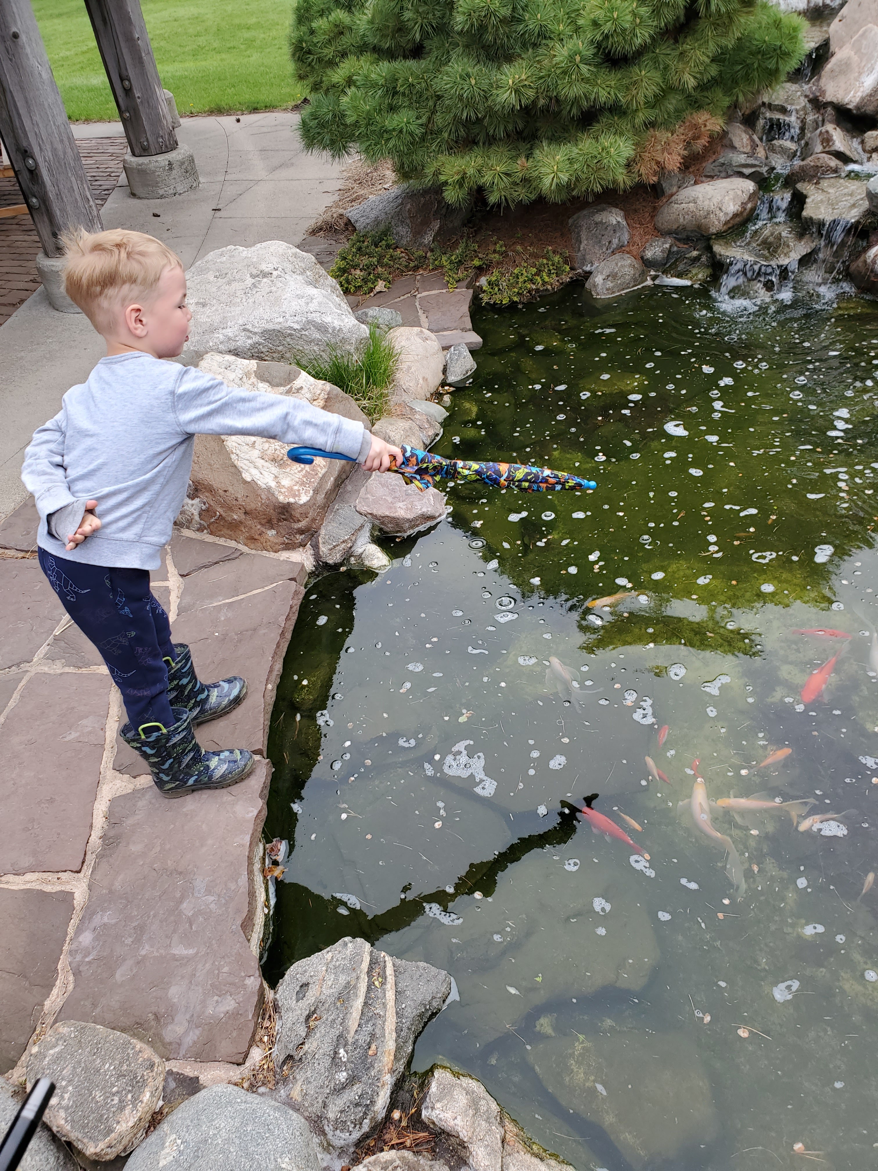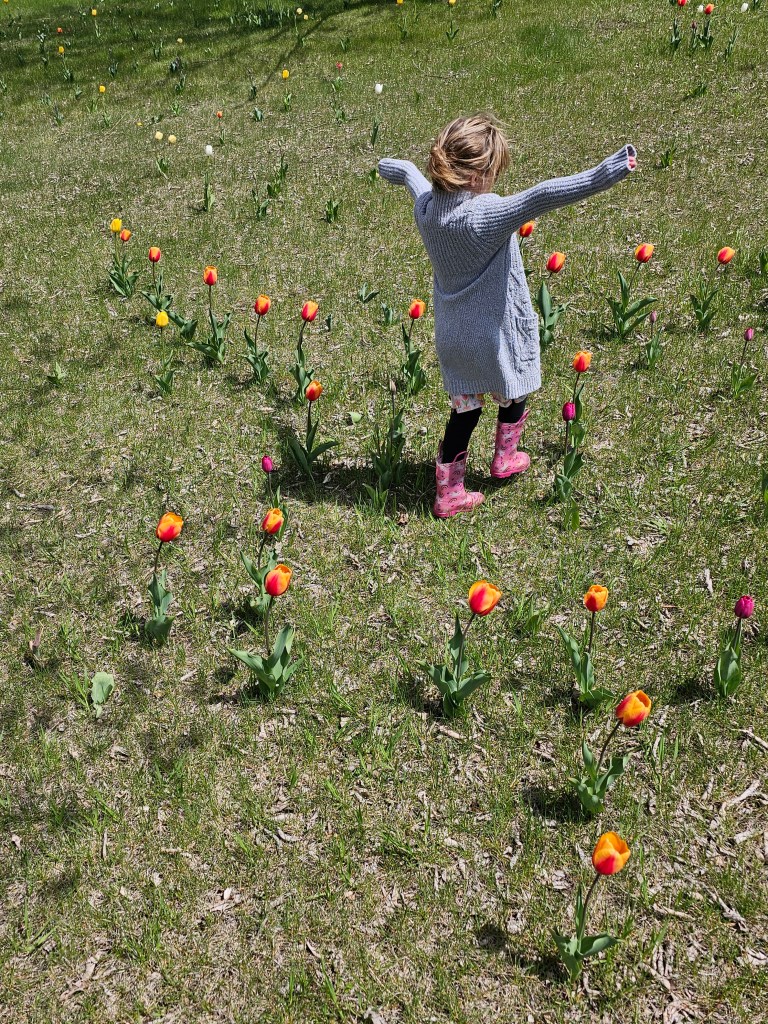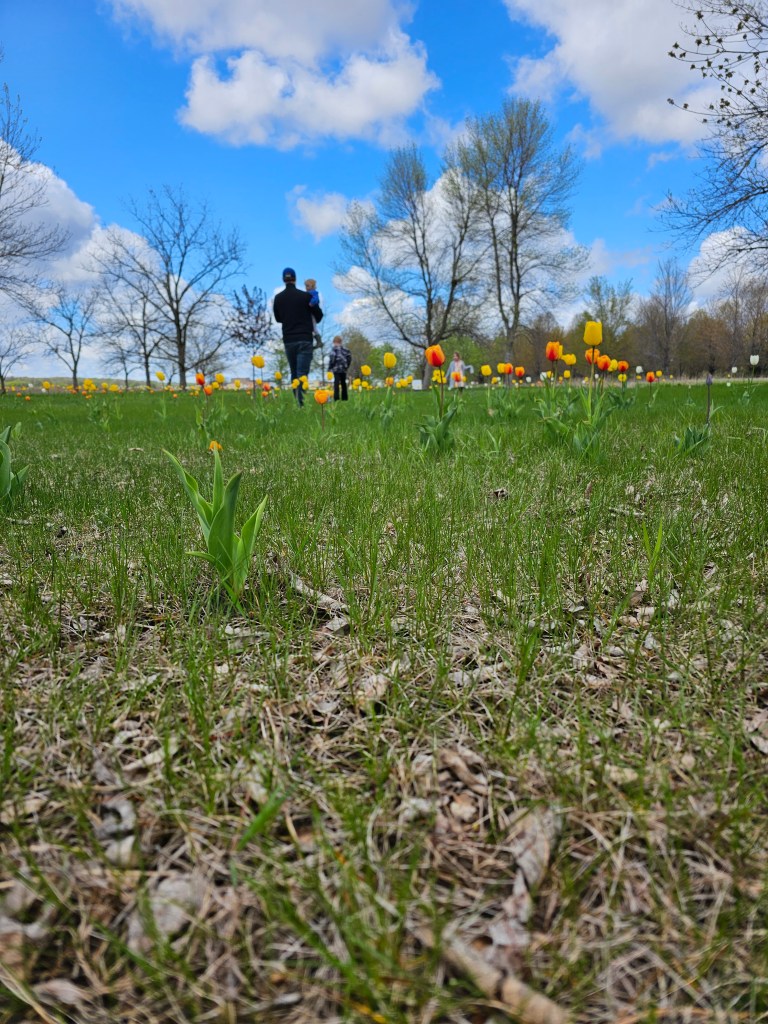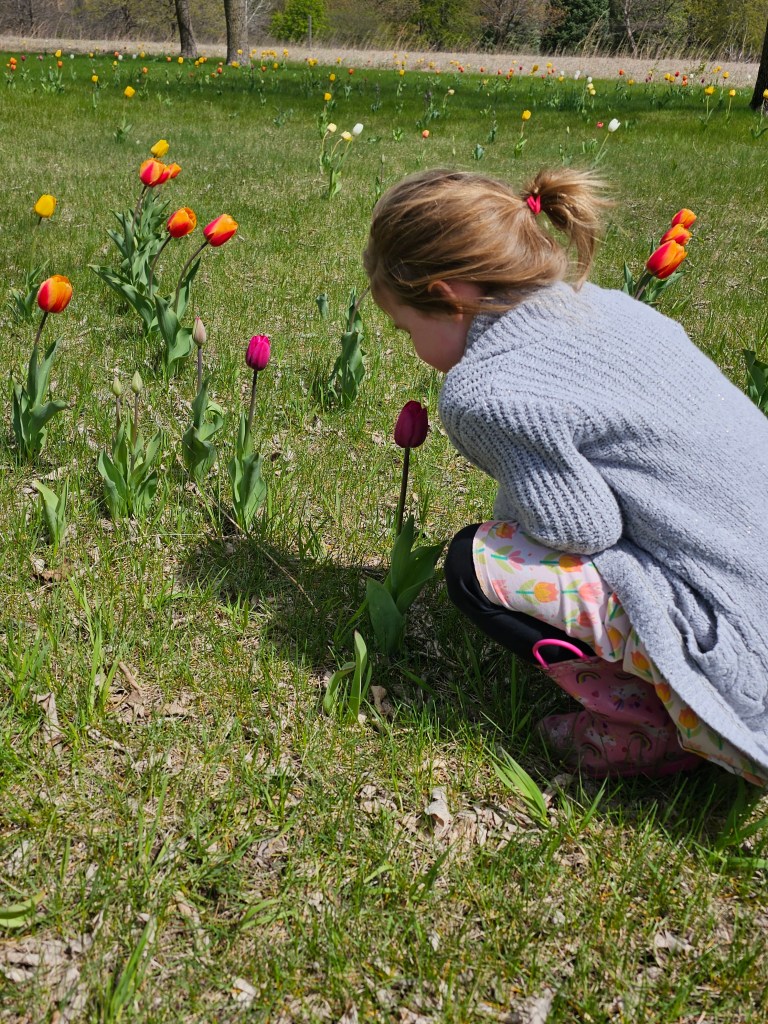 Besides the tulips, the Arboretum has a lot to offer. Stunning gardens line the trails and each garden has different surprises from year to year. It’s clear the people who run the garden like to keep things unique and memorable for anyone who visits. Examples include: rock animals, nature tic tac toe boards, lawn games and sports equipment to borrow while you visit, and stump seating. There is also, a sand box and logs to climb on. A koi pond with a small waterfall is also, a hit with my kids. Other spots they enjoy are a small rock area where they can climb to their heart’s desire, an edible garden area, and a labyrinth. We also, love the education available throughout the Arboretum. Many plants and flowers are labeled and there are details about most spaces and their significance to the Arboretum.