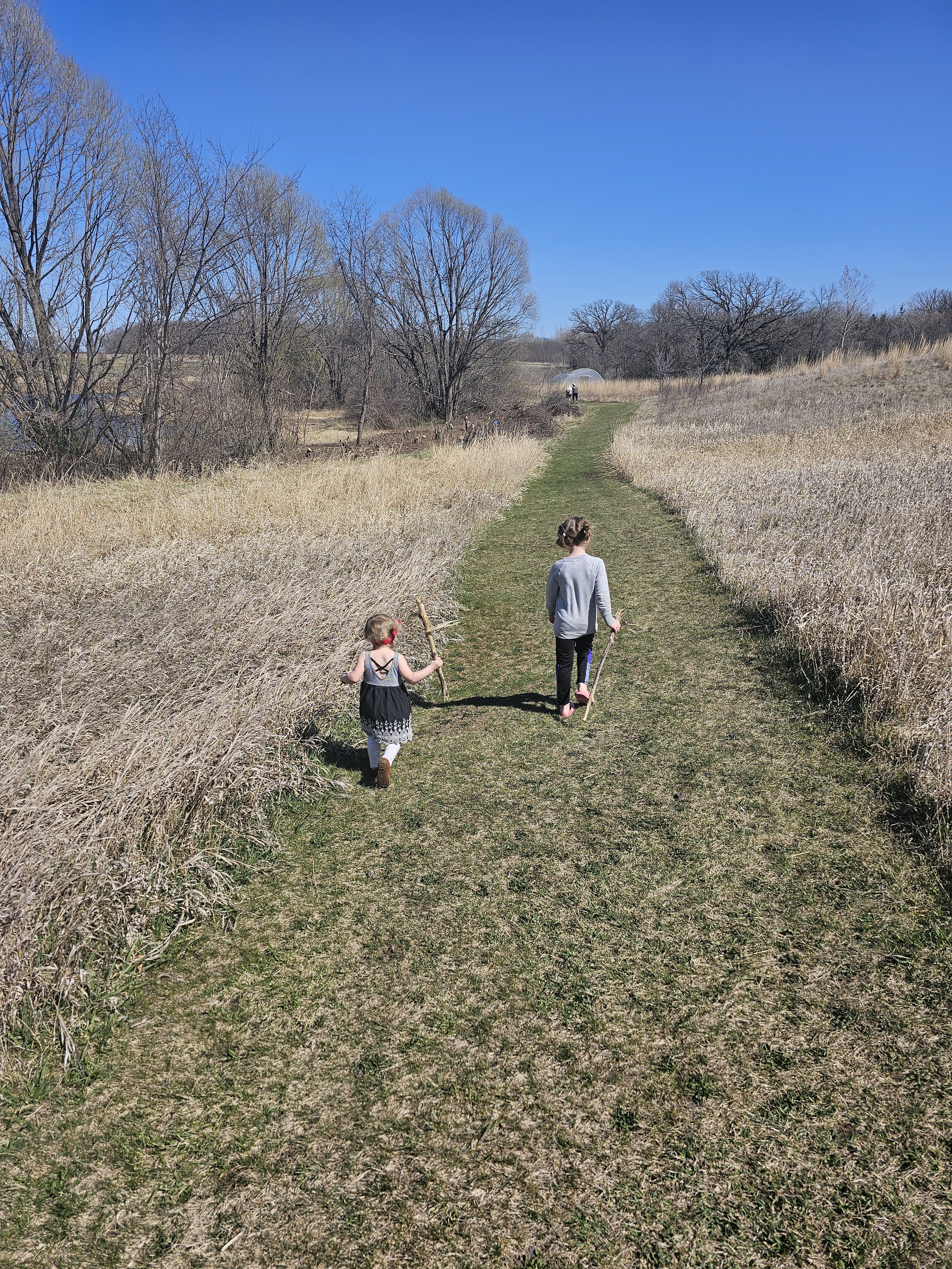 Our second place that we love to walk in the spring is Ney Nature Center in Henderson, Minnesota. Not only does it have a breath-taking view above the Minnesota river looking down, but this spot also, has a wide variety of landscapes to walk in. I love spots where it’s not the same kind of land you walk in the entire time. Ney offers prairie, wetlands, ravines, and woods. Again, this is a location with many benches, picnic tables, and chairs to sit and enjoy nature while eating a snack.