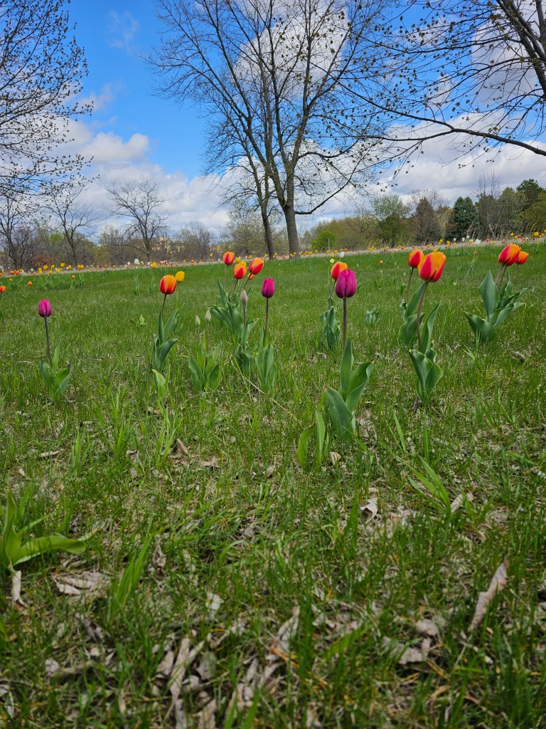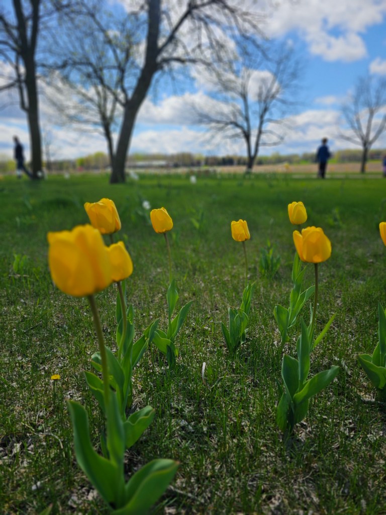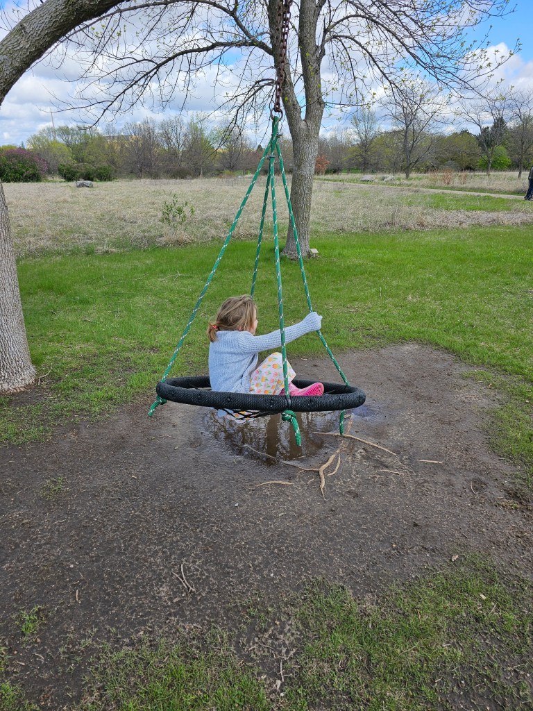 If you love tulips, but can’t make it to a tulip festival, you need to check out the Arboretum. They have a field where each class of students plants a specific color of tulip. So, as the years go on, the field has gotten larger and filled with more color. I love that each tulip represents a student, past or present. Close to the tulip field is a large swing that my kids love to take a ride on.