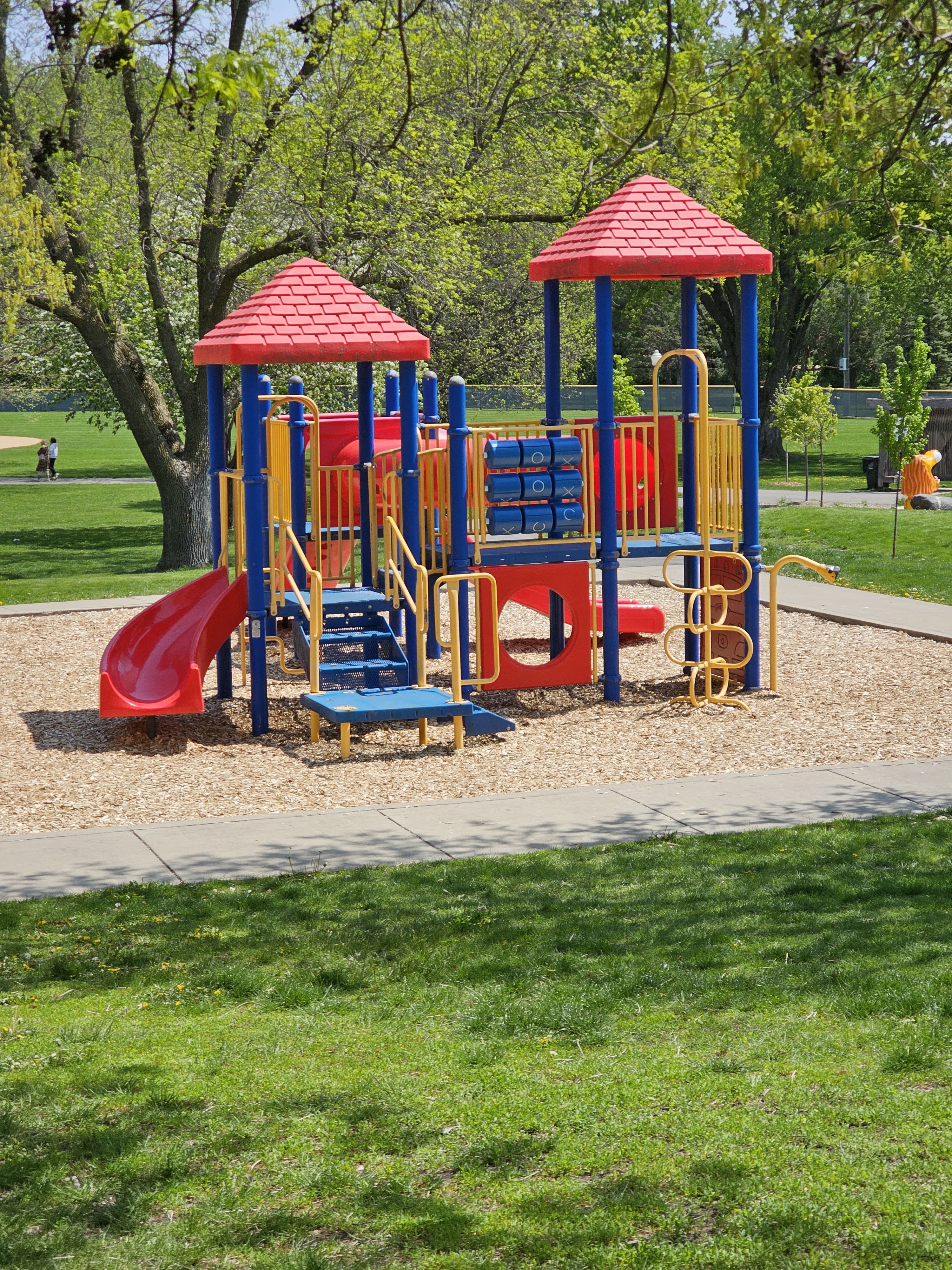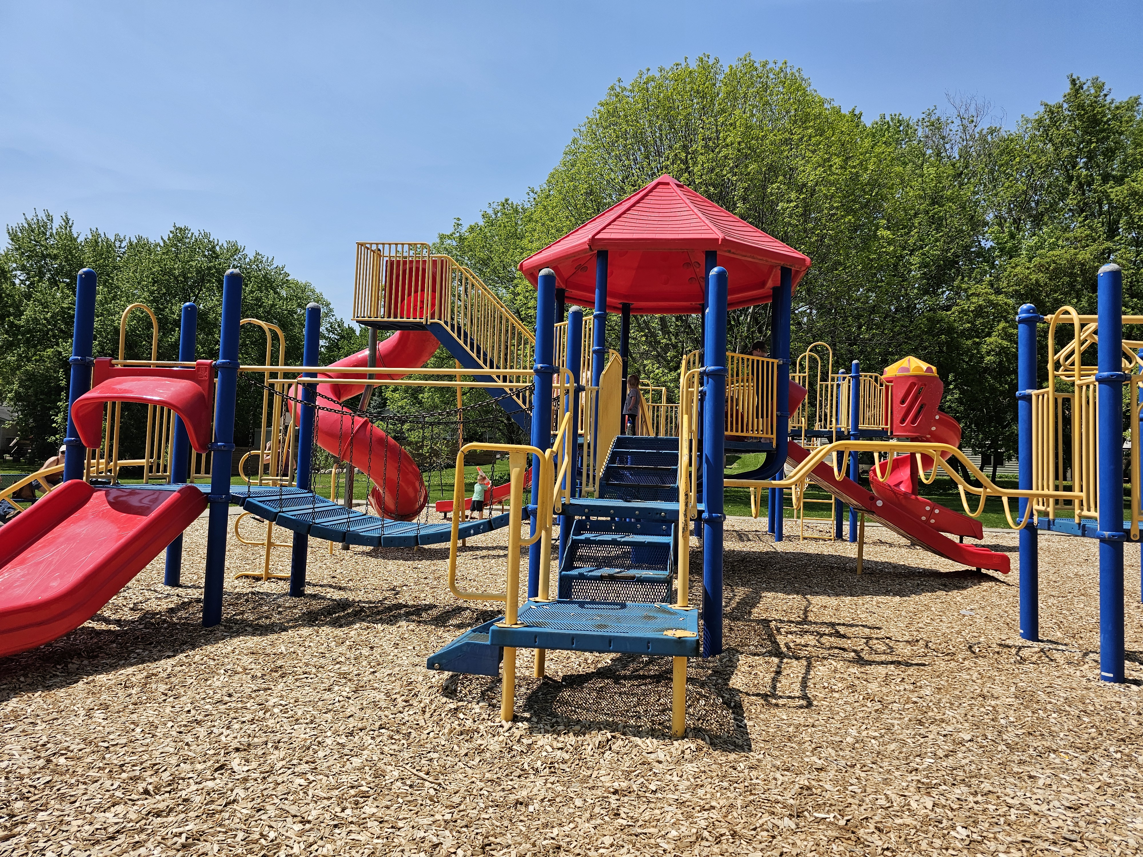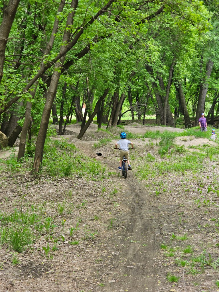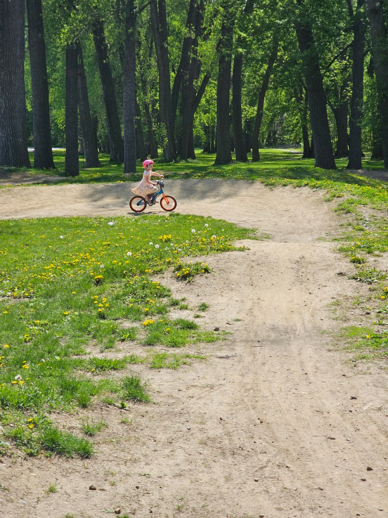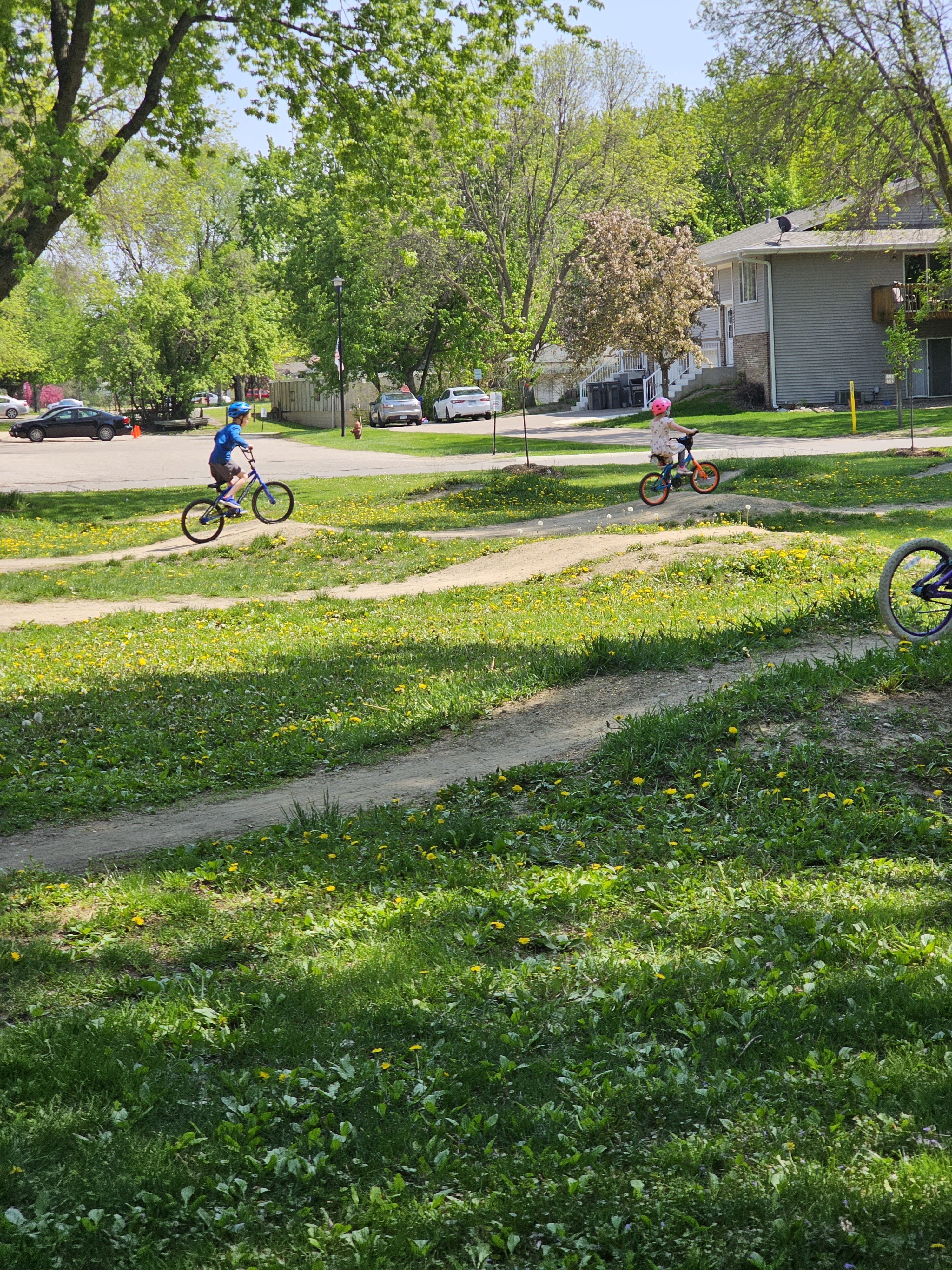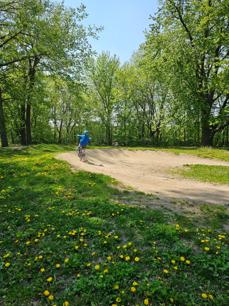We tried this spot first and it was the perfect beginner location. Made entirely out of mud, it felt safer and less intimidating than a pump track that had wooden or concrete pieces. It was kind of challenging to find this location as Maps led me to Lions Park. The park is awesome for both big and little kids as it has lots to do. There’s also, pickleball courts and three baseball fields. Right beyond the pickleball courts, there is a small wooden bridge that led us to the pump track. Parking is available on the street by the track and I’d suggest parking here as it’s a bit of a walk if you park by the playground. When we arrived here, only two older boys were riding and they were more than willing to take turns with my kids. I asked if this spot was ever busy and they said, “never!” Apparently, it’s a hidden gem!