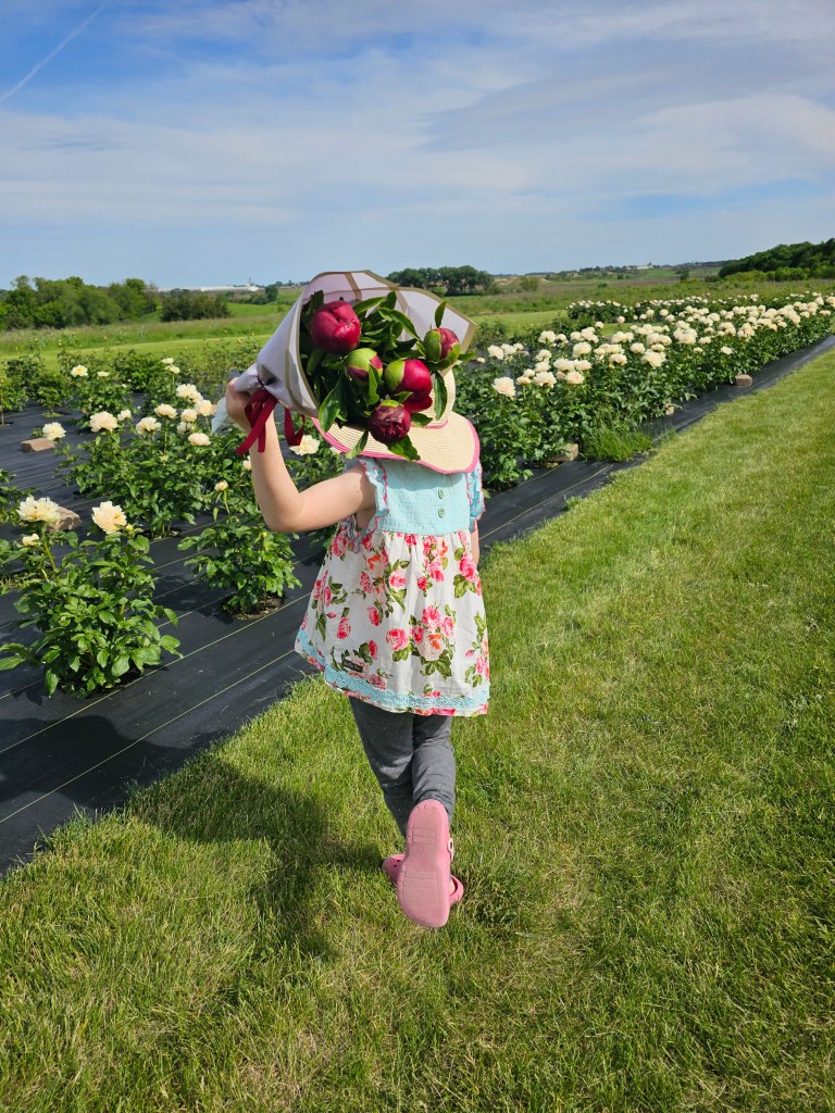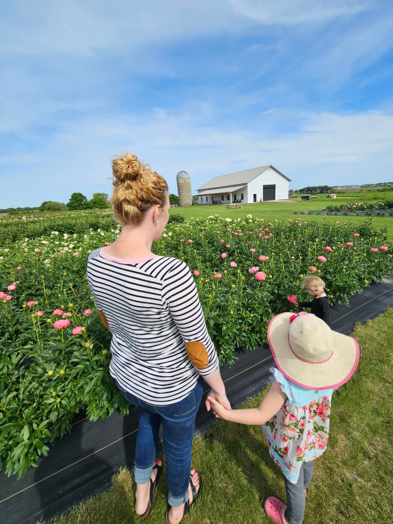 Located just outside of Okoboji, Iowa, Silo Ridge Peony Farm is in Milford, Iowa. Driving up, you are greeted by a beautiful barn and then, rows upon rows of peonies. Despite having peonies in our own garden, I was shocked to find out there are tons of different kinds of peonies. Shockingly, they don’t all even look close to the same. Two details that were fun for our family were labeled flowers of the different varieties in vases inside the barn for everyone to see and labels for all of the assortments of peonies out in the gardens. This made for some interesting education for the adults and kids!