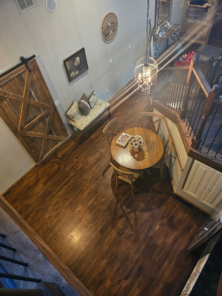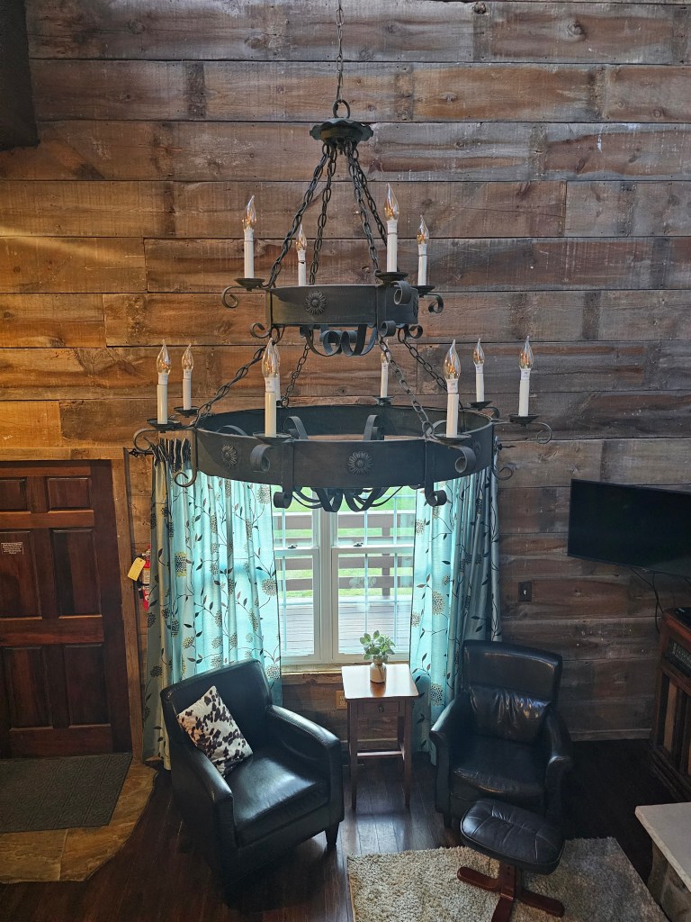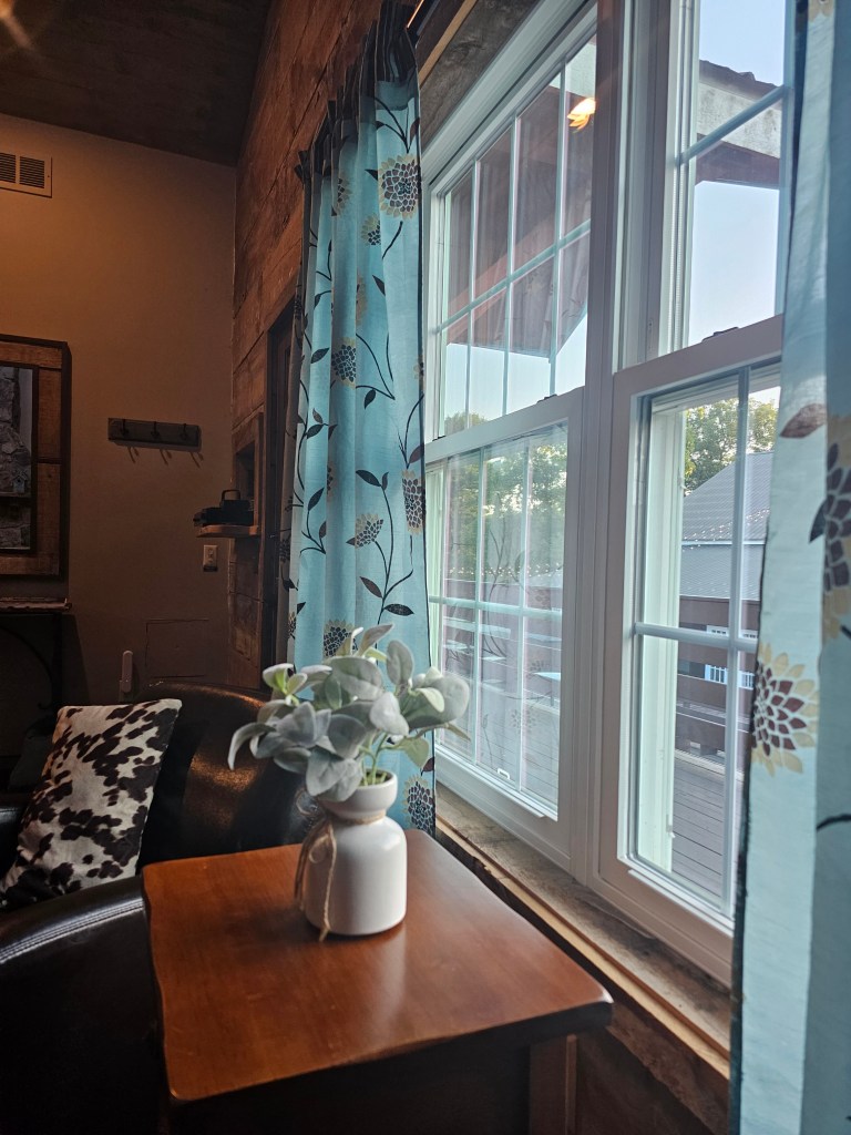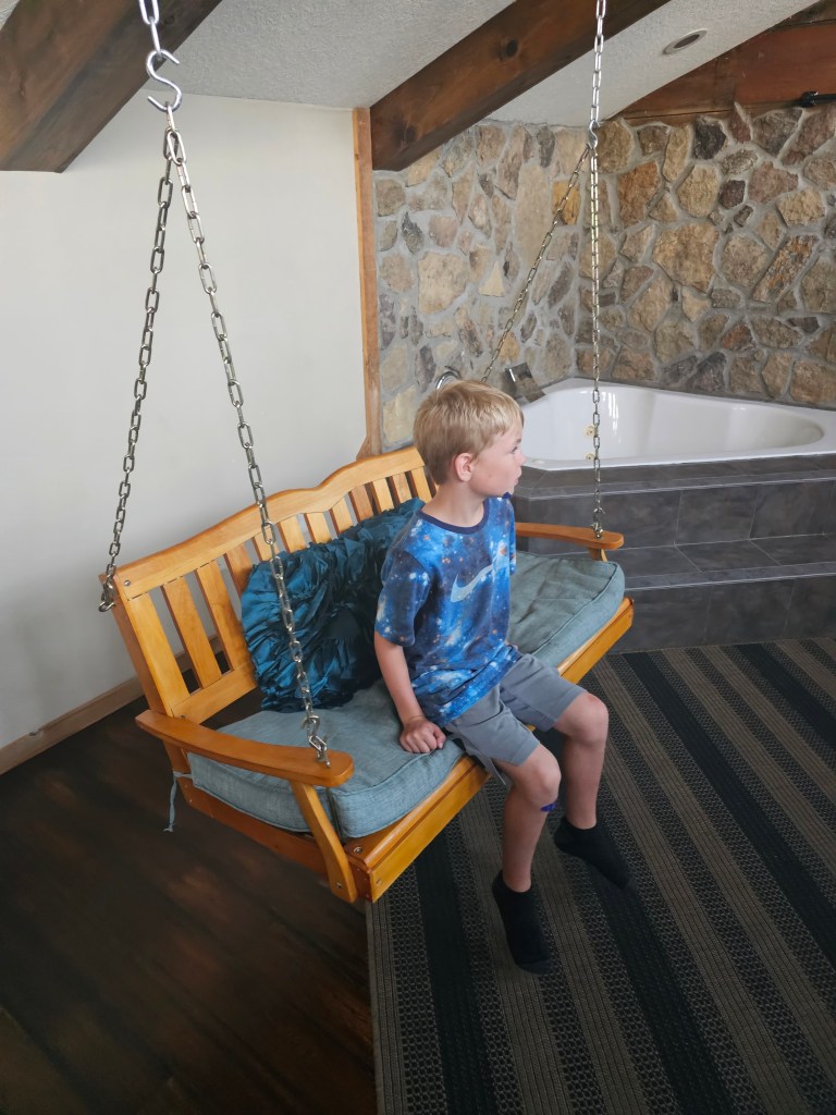 Walking in the doors, we were greeted by the sweetest sound of our favorite Christian music station playing lightly in the background for the perfect inviting ambiance. Details around the cottage welcomed us in. A living room area, stairway, kitchen, sitting area, and an upstairs consisting of a swing and a two person jacuzzi greeted us right away. Winding around the hallway, there was a bathroom with a beautiful rain shower and the master bedroom. The hosts had put so much thought into the smallest features, such as the mugs, plates, and decor. We loved the idea of having board games, books, and puzzles accessible to guests. In fact, we completed an entire 500 piece puzzle while we stayed. It was the most relaxing thing to do while we sat and talked and listened to the gentle sound of the music on the surround sound system.