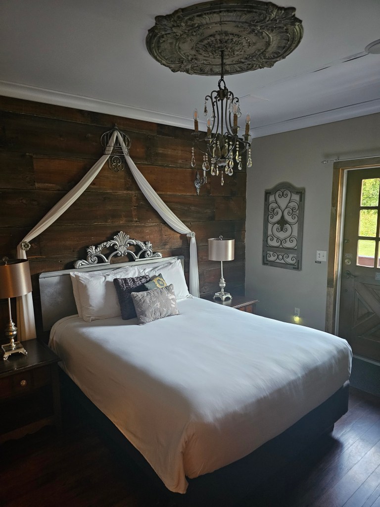 Driving into the property, we were greeted by an absolutely breath taking wedding venue with the Corn Cribbage Cottage and tree house directly behind it. The sun was starting to set behind the venue as we arrived and I imagined the weddings here must be incredibly memorable with this amazing backdrop. We immediately checked out the Corn Crib. The hosts had made check-in seamless and easy with no contact needed from them.