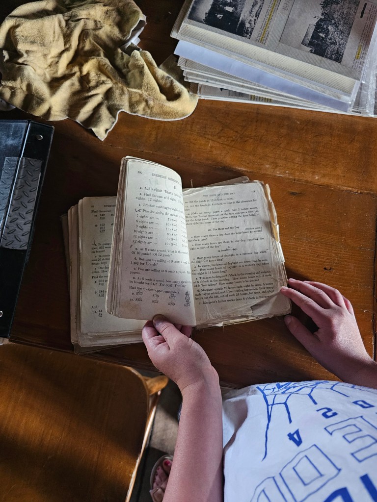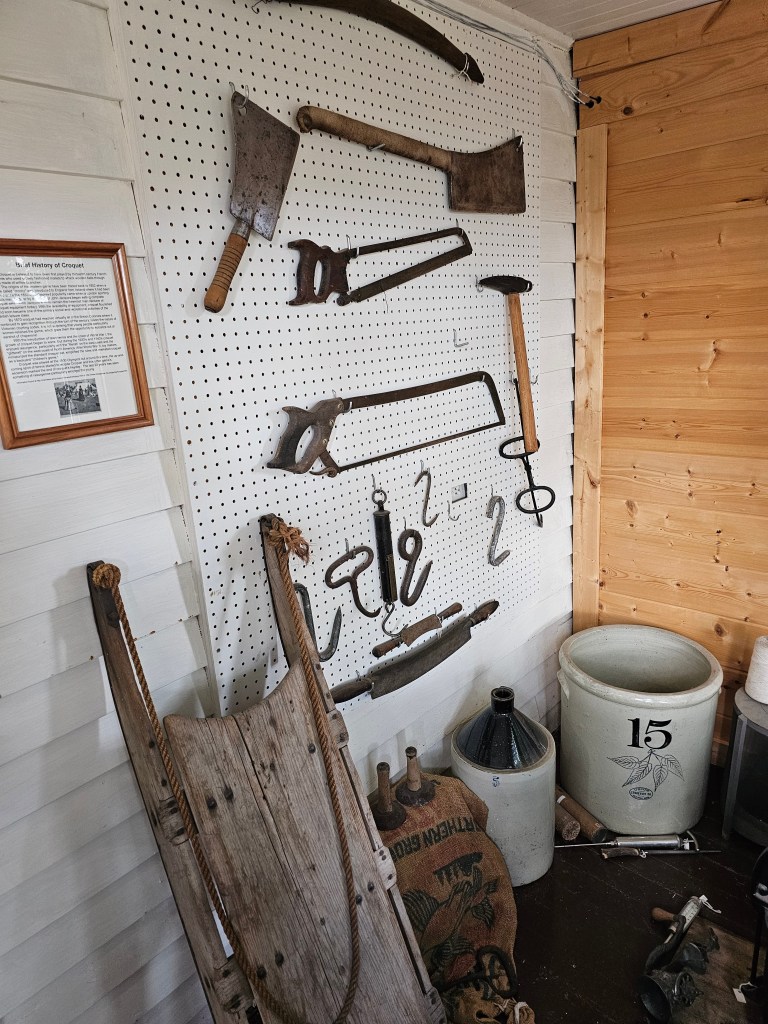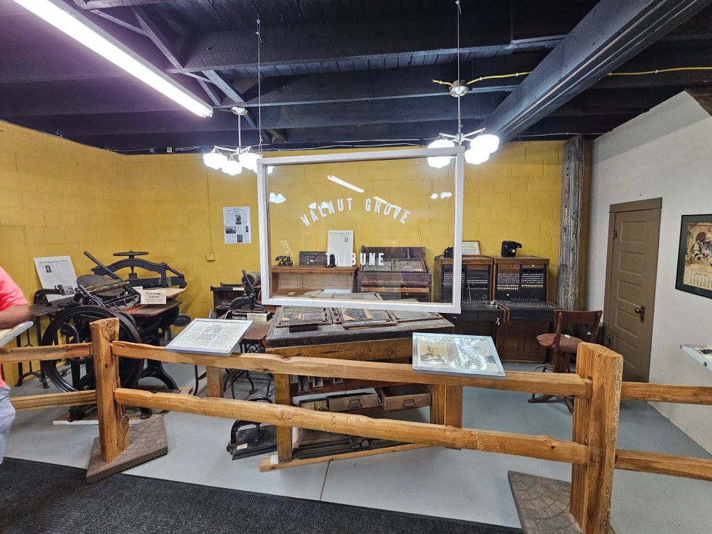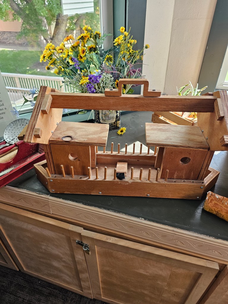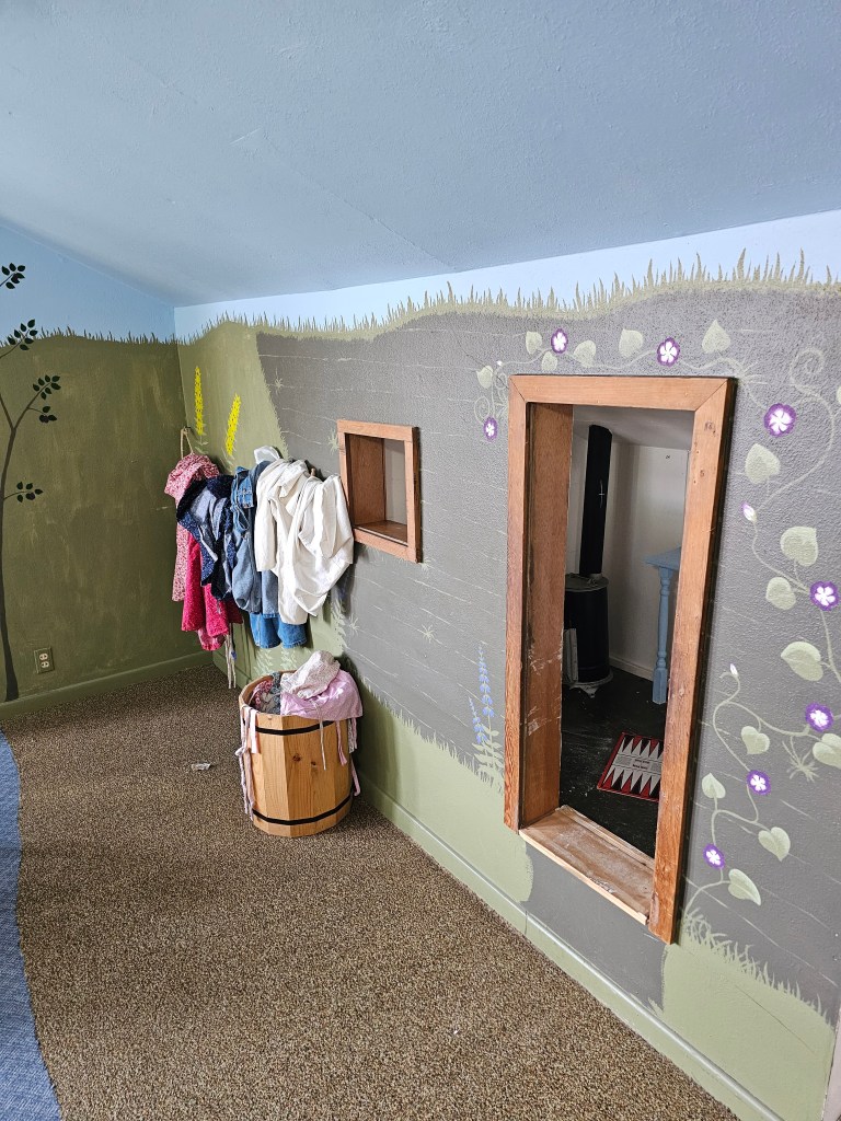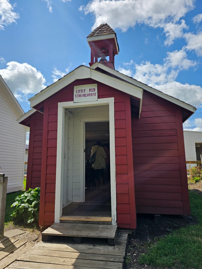 Next, we headed to Grandma’s house. In this spot, there were many things on display that they had used during that time frame. The kids were shocked at what washing machines, ovens, phones, and butter churners actually looked like. My girls loved trying on the bonnets and aprons to see what their normal outfit would consist of. Much to their surprise, they were ecstatic to find that Grandma’s attic contained a play area for them. They all quickly found spots they enjoyed from writing on chalkboards to a computer game of the Oregon Trail to an old Noah’s Ark to a play kitchen. We easily could have spent awhile playing in this space.