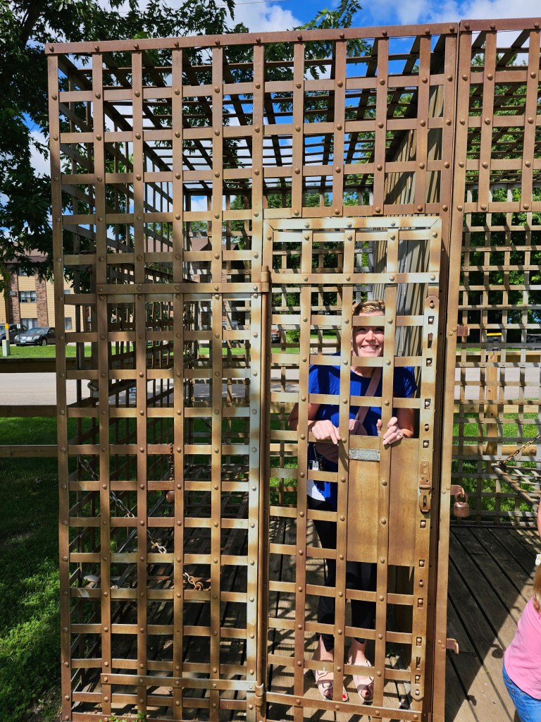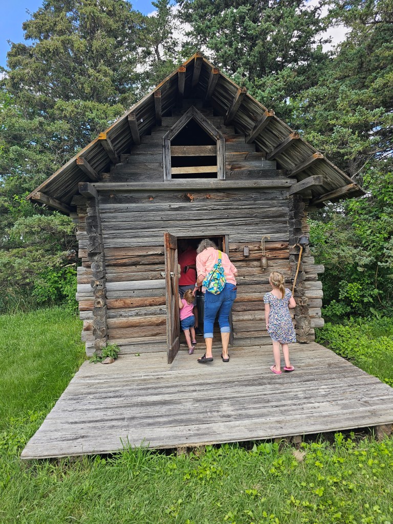 Moving along, we took a visit to the jail where the kids were mortified that two people had to fit, sleep, and bathroom in this small, not private area. They also, had an example of a dug-out. This was definitely a highlight as imagining a house like this was well out of the kid’s ability level until they saw it in person. We were amazed at the temperature difference as we walked into the dug-out. Also, we were in awe of the hard work it must have taken to make a home like this. Pretty amazing to compare our houses today with a dug-out!